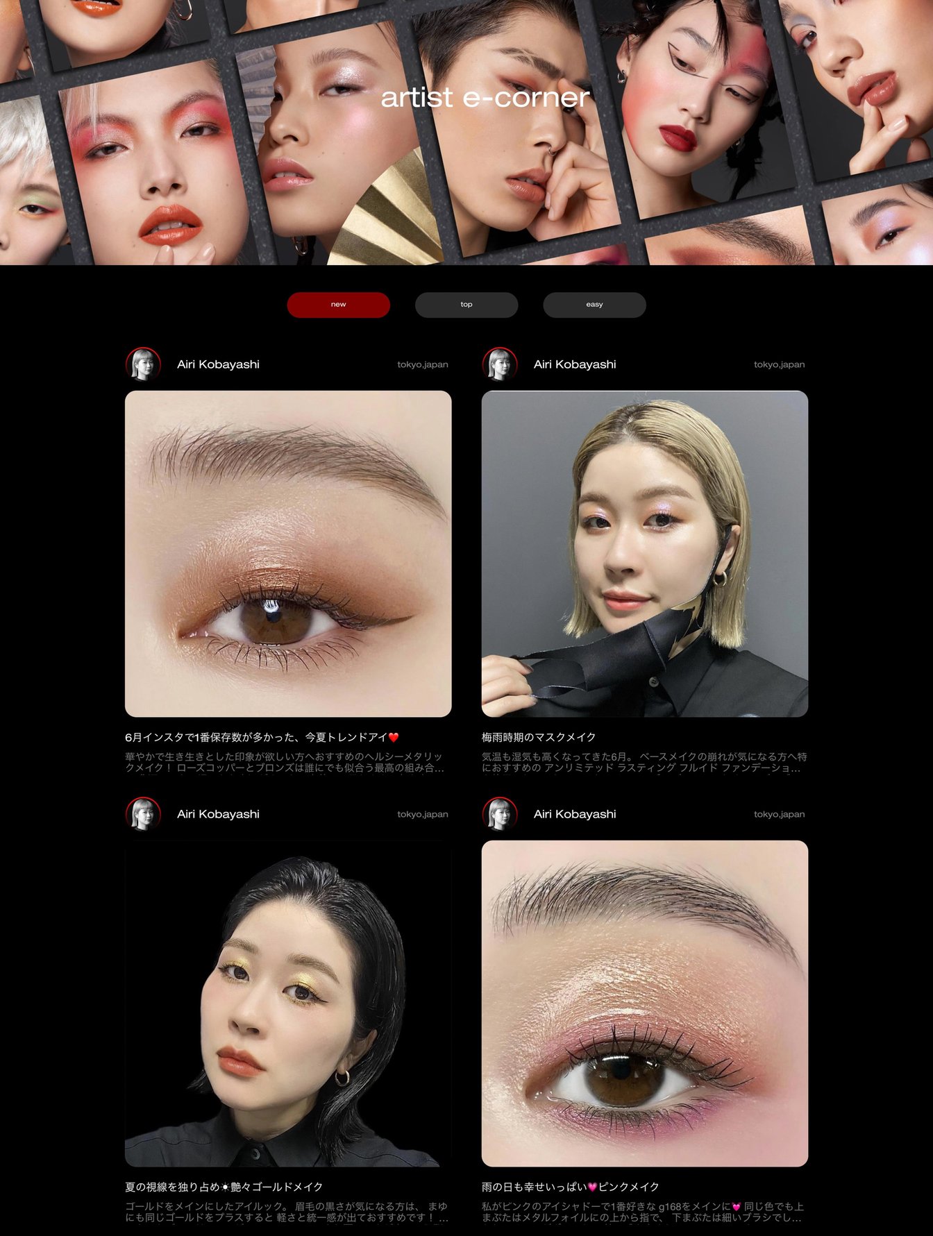 今回始動したartist e-cornerには、個人インスタアカウントを持つサーティファイド メイクアップ アーティスト以上の約20人が参加。公式オンラインストア内にartist e-cornerのコンテンツを用意し、アーティストがインスタグラムで投稿したメイクルックを個人別に掲出。各ルックページで使用アイテムを紹介し、アイテムをクリックすることで購入ページに飛ぶことができる。個人アカウントには、公式サイトのartist e-corner内で展開する個人の掲載ページのURLを記載することで、Eコマースと連携させ、購入への導線を整えた。どのアーティストのルックから購入に至ったかも確認でき、売り上げに応じたインセンティブも導入した。