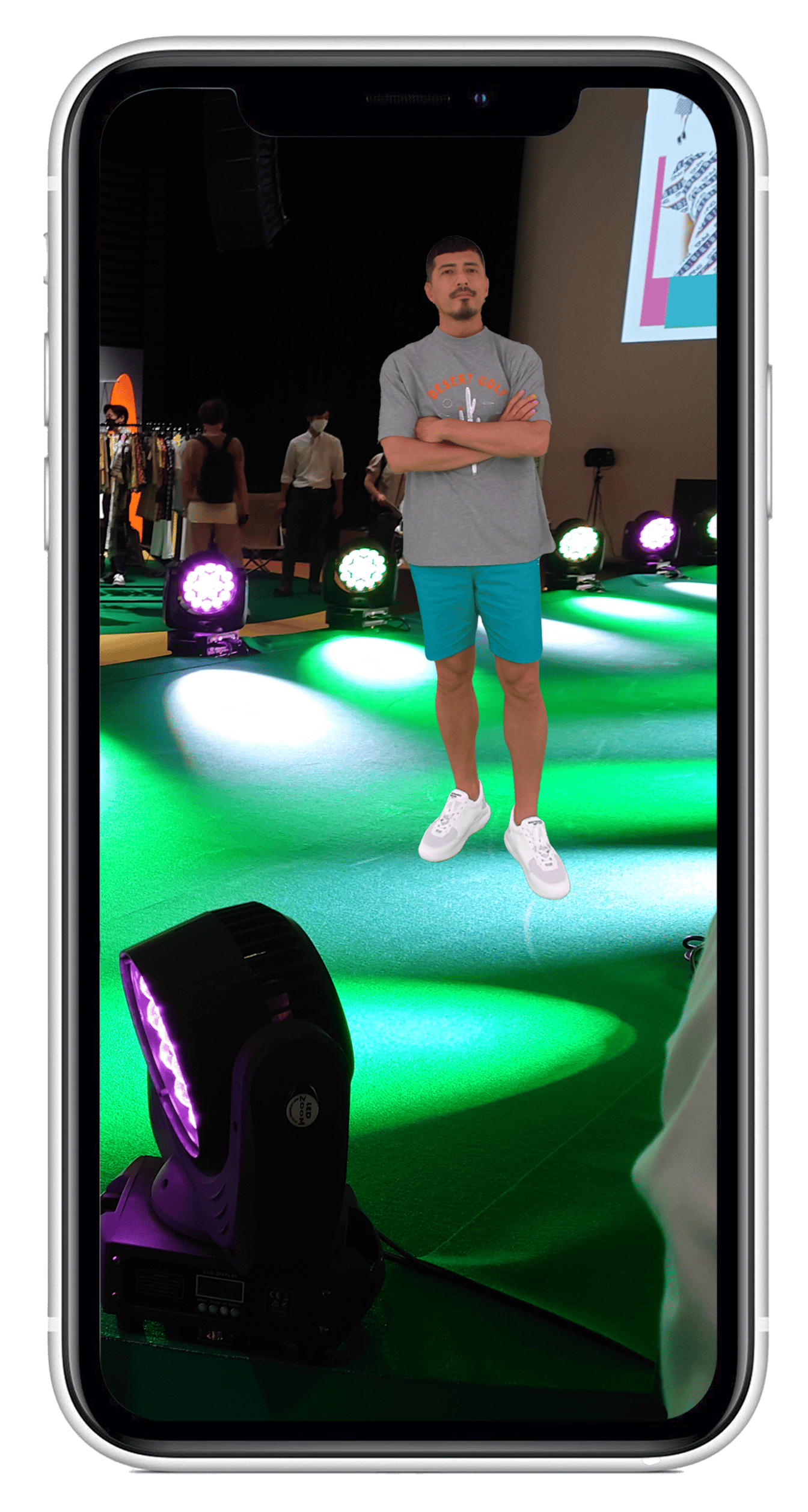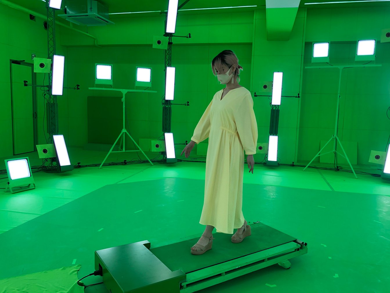 今回のバーチャルファッションショーでは、リアルなモデルのウォーキングをボリュメトリック撮影したものを使用した。ボリュメトリック撮影とは、立体映像技術の一つで、人物などの動きや位置も含めて三次元デジタルデータで撮影することによって、3D映像データを生成できる技術だ。このデータをKDDI株式会社の提供するWEB ARサービスとNrealLightで鑑賞できるようになった。