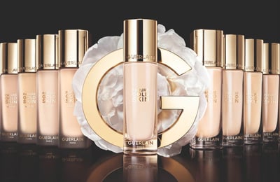 ハートノートでは、ローズアブソリュートとパウダリーとアイリスのフローラルノートを重ね、フゼアアコードをフレッシュなジャスミンサンバックで包むことでコントラストを演出。フゼアとトンカビーンのグルマンで温かみのある香りが生み出す緊張感によりモダンな印象に仕上げたという。トンカビーンのほか、ゲラン特有の希少な素材としてバニラ プラニフォリア チンキを使用している。
