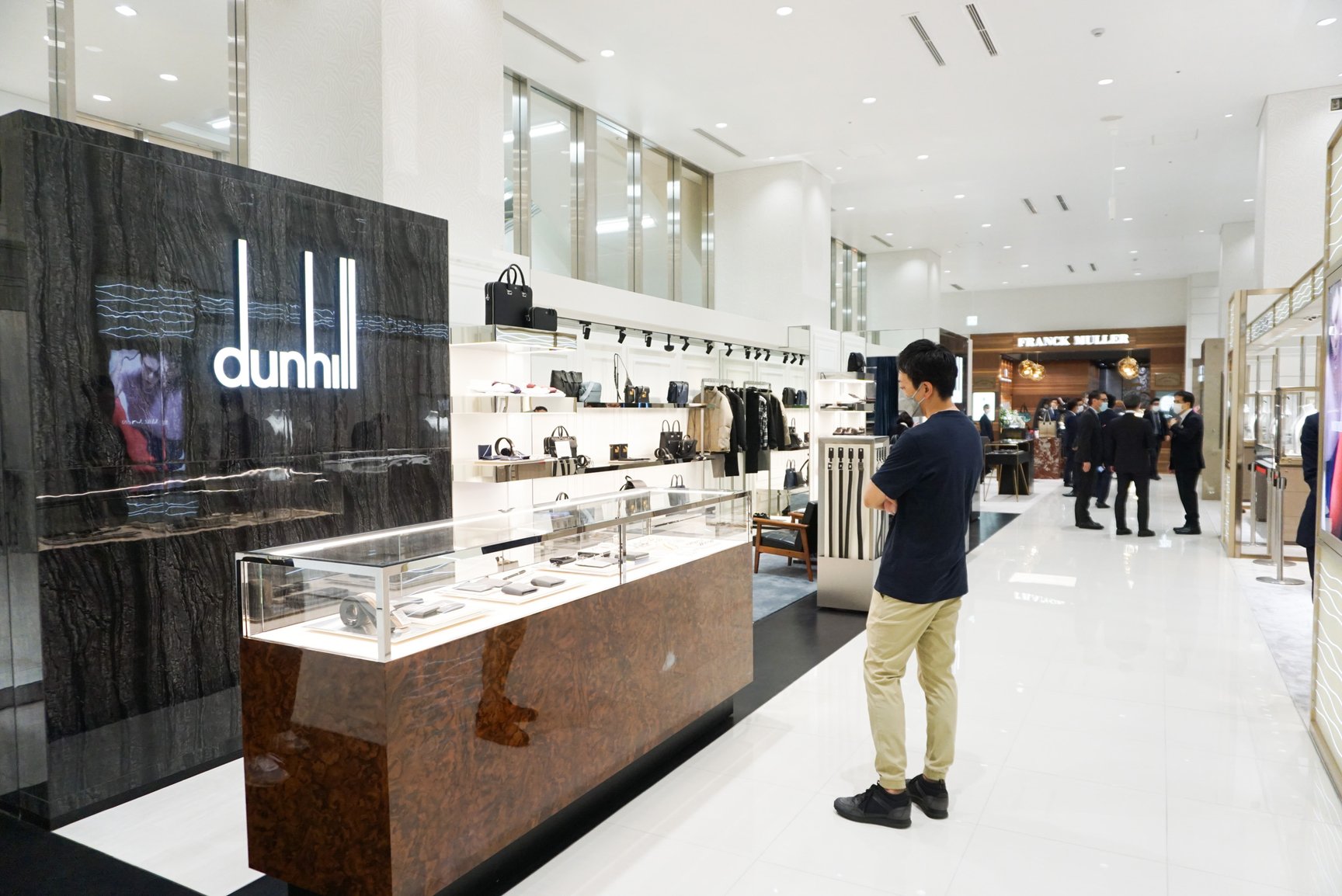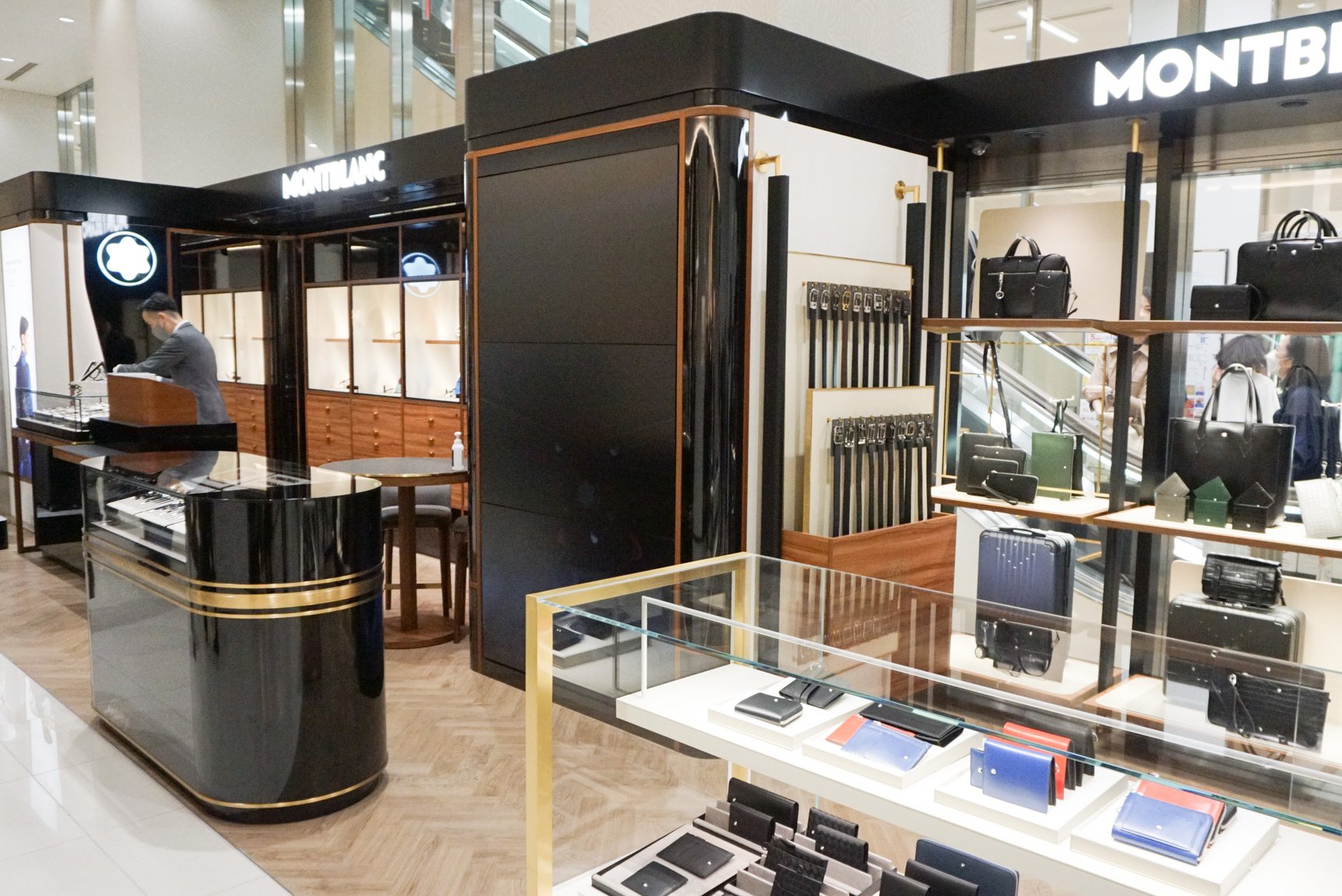 地上1階の売り場は、新宿西口ハルクの顔にもなっていた「ハルクスポーツ」のゴルフ関連から、インターナショナルブティックとウォッチ&アクセサリーに変更。コロナ禍で日本人客によるラグジュアリー消費が勢いを増しているが、同店も同様で、コロナ前の2019年度比の売上を超えているという。地上1階における取り扱いブランド数は、本館が9ブランドだったのに対し、新宿西口ハルクでは14ブランドに増加。ブランドの入れ替えも行い、「モンブラン(MONTBLANC)」「ジョルジオ アルマーニ(GIORGIO ARMANI)」「フランク ミュラー(FRANCK MULLER)」の3ブランドが新規出店した。モンブランでは高級万年筆に加えてレザーグッズをラインナップ。ジョルジオ アルマーニはブランド初のレザーグッズオンリーショップとして展開し、フランク ミュラーは時計だけではなくショップ内のインテリアや調度品も販売するなど差異化を図っている。