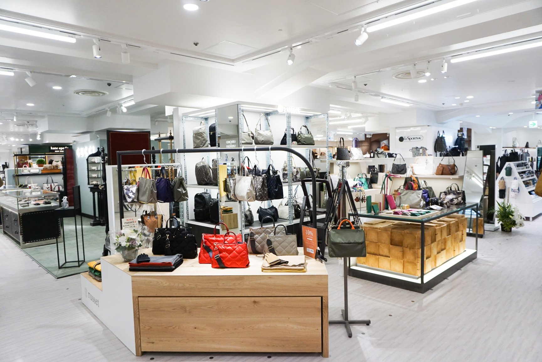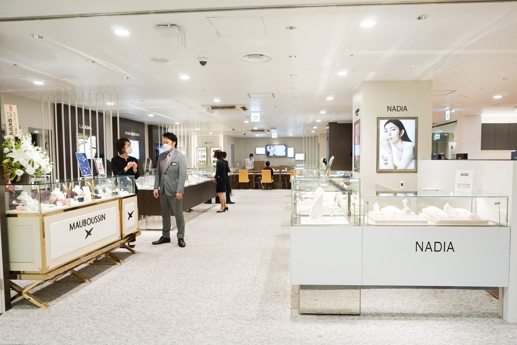 地上2階の売り場では「コーチ(COACH)」や「マイケル?コース(MICHAEL KORS)」などのブランドのハンドバッグや婦人靴、婦人服飾雑貨をラインナップ。7階にはギフトサロンや宝飾品売り場などを設け、宝飾品売り場奥に外商顧客向けの「お得意様サロン」を配置した。