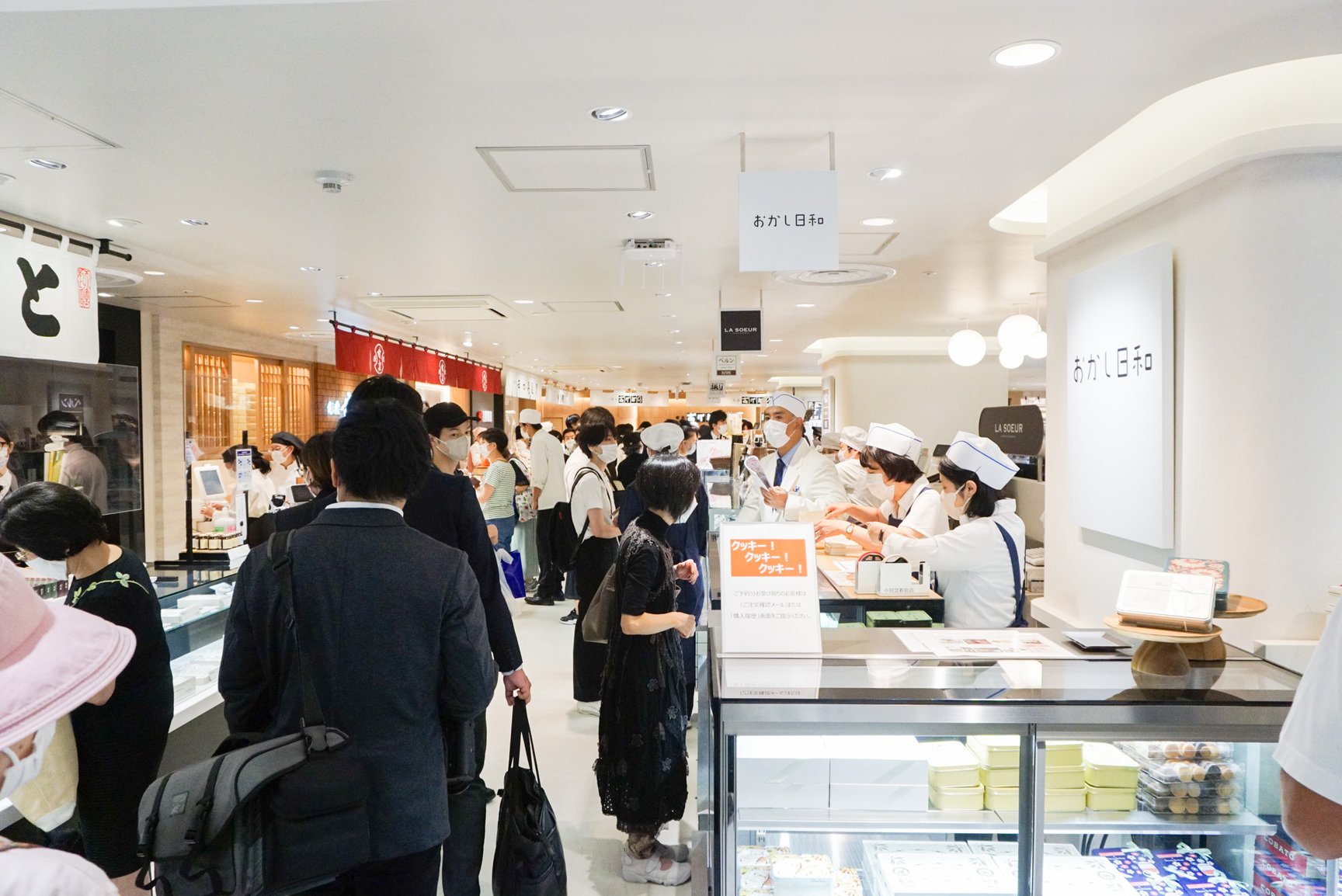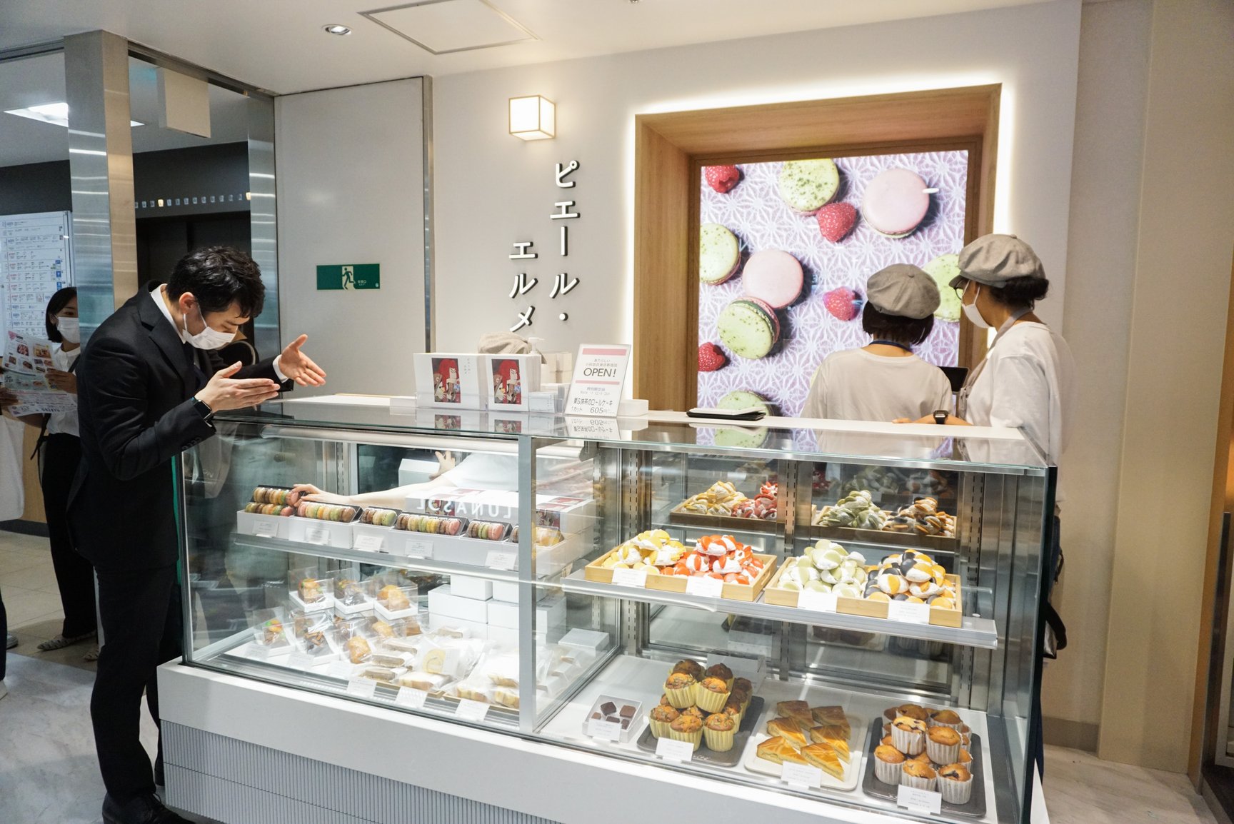 和洋菓子では、百貨店初の店舗として「銀座甘楽」と「深川伊勢屋」に加え、「Made in ピエール?エルメ(Made in PIERRE HERM?)」をオープンし、開店直後から賑わいを見せた。