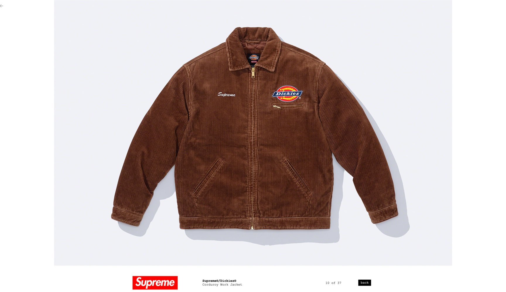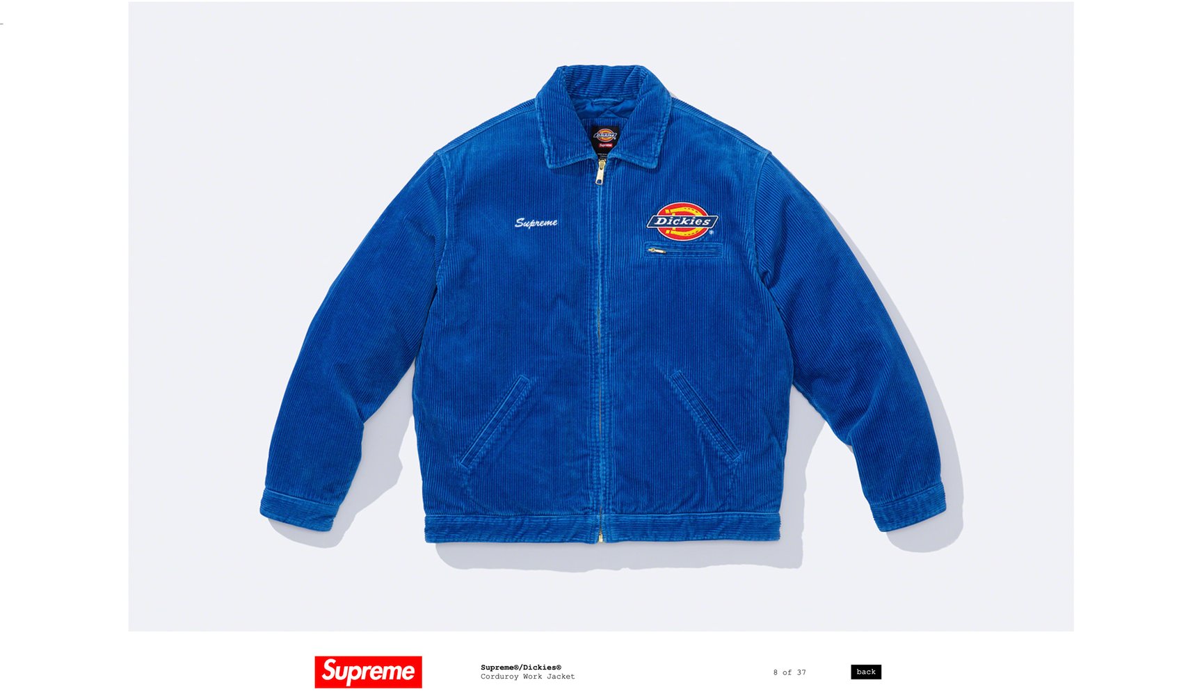 「シュプリーム(Supreme)」が、「ディッキーズ(DICKIES?)」とのコラボレーションコレクションから2022年秋冬の新作を10月29日に発売する。