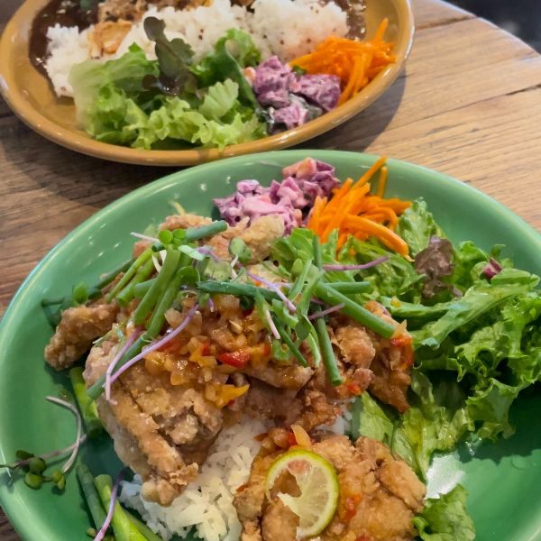 こちらでは、『ソイミートから揚げ油淋鶏ソース』をおいしくいただき、まずは腹ごしらえ。