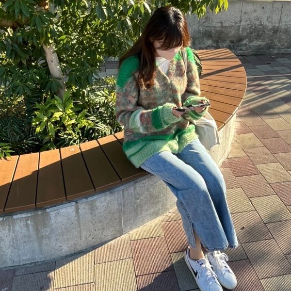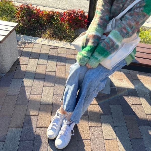 ちなみに私は、PAMM(パム)の『汽水域のニットカーディガン(藻場)』に、デニム、スニーカーコーデにしてみました。3話で紬ちゃんがグリーンがかったグラデーションニットカーディガンを着ていたので、持っているアイテムの中から、1番近いものを選んだつもり…(笑)