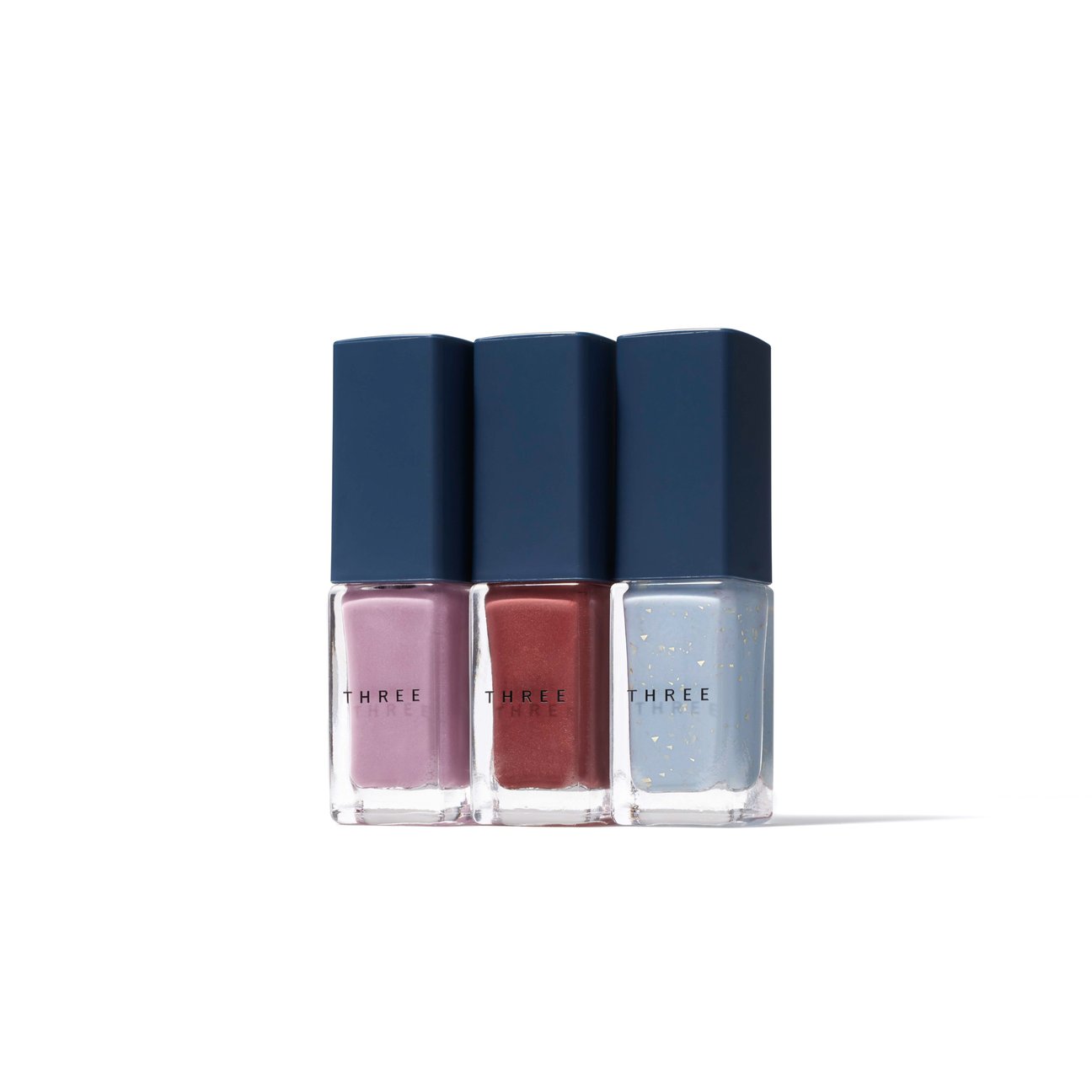 5種類の植物オイルを配合し、爪の呼吸を妨げない優しい塗り心地の「THREE ネイルホ?リッシュ」からは、刻々と変化する美しい空の色に気持ちを重ねるような、エフォートレスなカラー3色を限定で発売します。