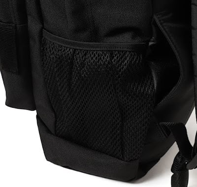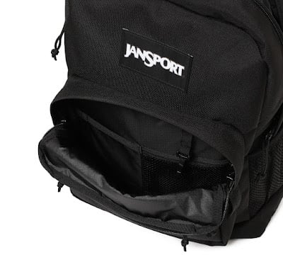 別注第2弾となる今回は、ジャンスポーツの定番モデル「Right Pack」をシューズボックスが収まる大きさにサイズアップ。カラーはブラック1色で仕上げ、底面に従来のレザーではなく、ボディと同色で同素材のコーデュラナイロン?を採用したほか、フロントのロゴラベルにもブラックを用いることで、統一感のあるデザインに仕上げた。