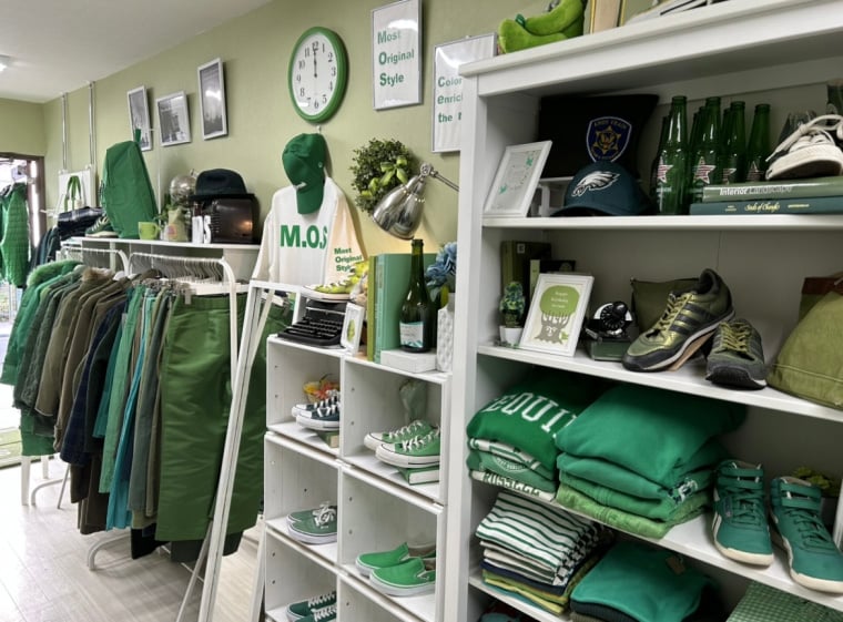 〝推し活?を楽しむ客が、好きなアイドルメンバーのイメージカラーのアイテムを求めて来店することもある。「予想外のニーズ。アイドルのライブが多い、中野サンプラザの近くの立地もよかった」という。