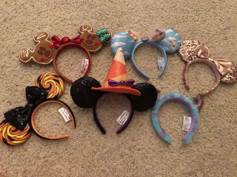 各ディズニーランドでしか買えない被り物、カチューシャなどがある