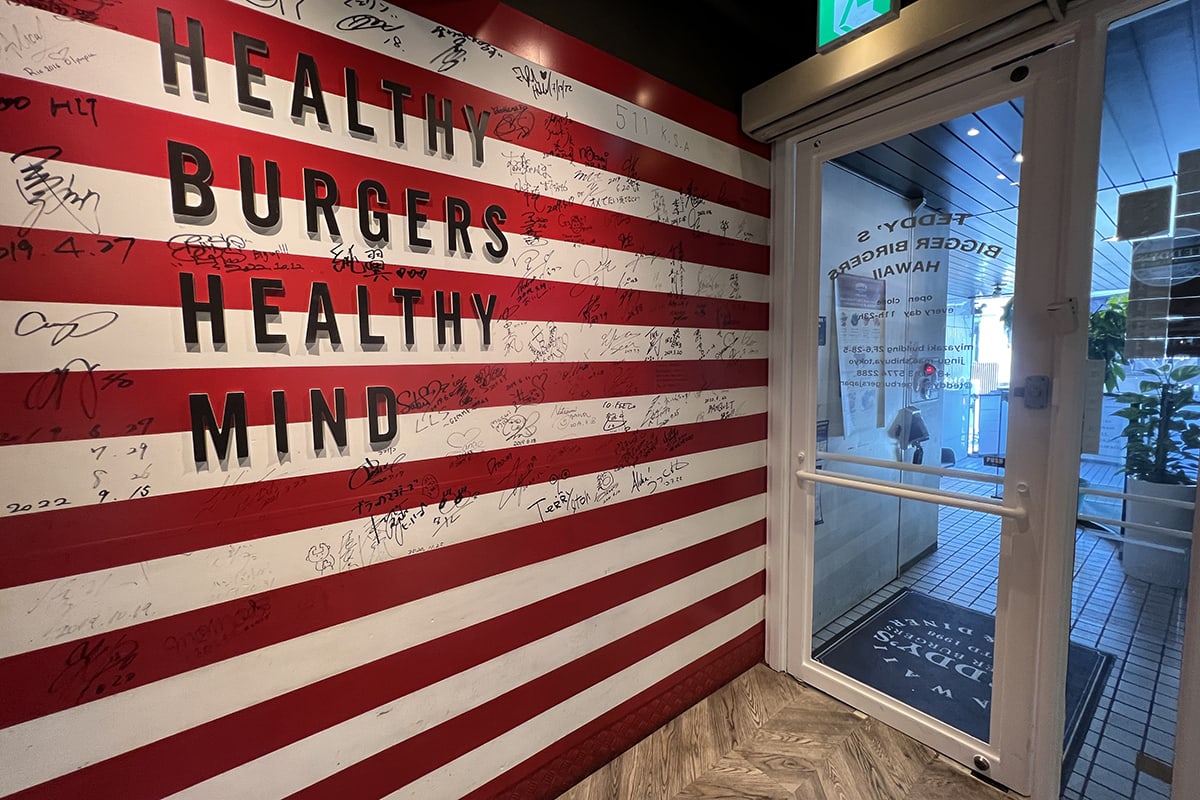 入り口には有名人のサインがたくさん。メディアでも数多く取り上げられているテディーズビガーバーガーだが、デカ盛りメニューの「MEGA MONSTER」、「GIGA MONSTER」も人気。バースデーにもぴったりで編集部でも一度、社内の誕生日でオーダーしたことがある。その名の通り、とんでもないモンスター(めちゃくちゃおいしいけど)なので盛り上がること間違いなし。ぜひ店舗のメニューでチェックしてみてほしい。