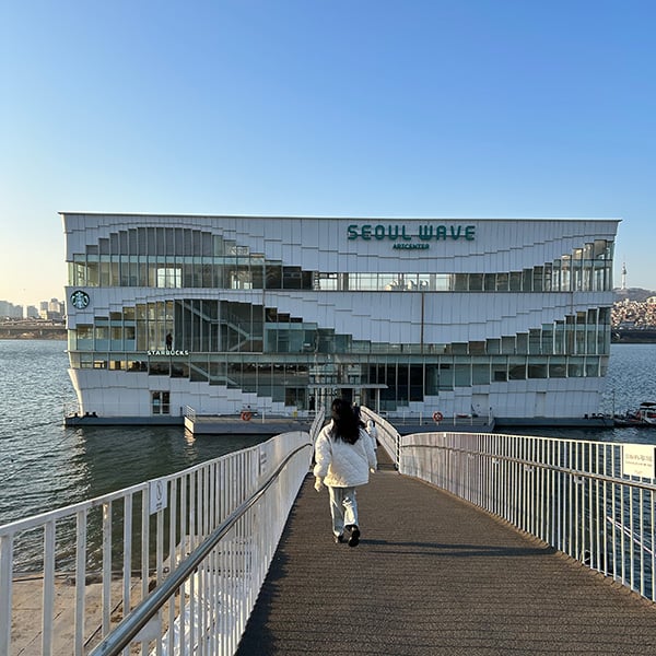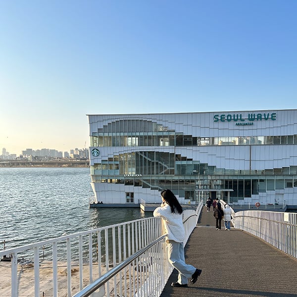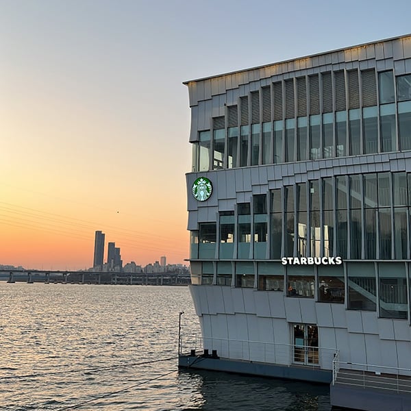 ソウル市民の憩いの場所、漢江(ハンガン)に浮かぶように設計された建物で、中には最先端の“スターバックス”が。