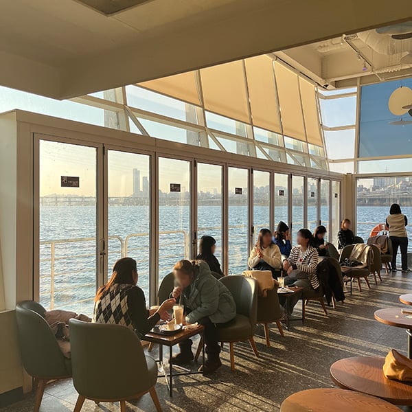 常に満席の窓際の席は、空いていたらラッキー!店内から漢江やソウルの景色が見られる、ベストポジションなんです。