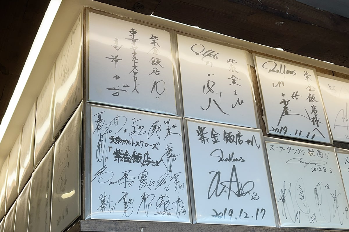 ちなみにスープはセットで付いてくる。横のお客さんの日替わりの中華定食もうまそうだったなあ。カウンターの上にはヤクルトスワローズの選手たち始め、ズラリと色紙が並ぶ。