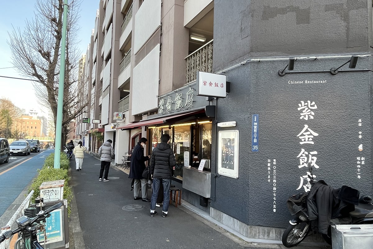 ローカルに根ざしながら、atmosといったスニーカーリテーラーともコラボするなどファッションとも関わりの深い紫金飯店。いわずもがな原宿の名店であり、人気店だ。お昼時をちょっと過ぎたって、外には人の並びが絶えない。客席は中華に夢中の客で溢れ、厨房は大忙しで注文の声が威勢よく飛び交う。これぞ中華料理屋のあるべき姿と思わせる雰囲気だ。