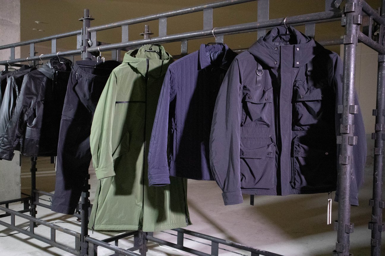 デビューとなる2023年秋冬シーズンは、アウターを中心にメンズとウィメンズのウェア約50型を展開。メンズは、ドローコード部分にファスナーのギミックを採用したコートや透湿防水のエコレザーを用いたブルゾンなどをラインナップし、ウィメンズはキルティングのセットアップやアウターなどを中心に取り揃える。