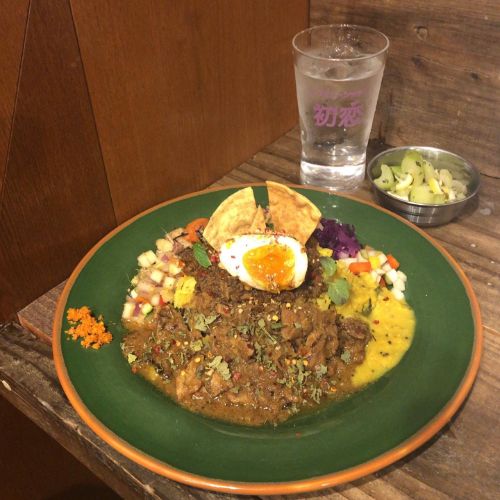JR渋谷駅から道玄坂を10分弱のぼったところにある、紫のレトロな看板が目印の「カレーショッフ?初恋」。南インド料理をベースにしたスリランカ風スパイスカレー&ビリヤニ専門店です。