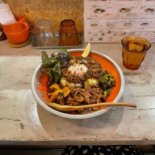 メニューがおもしろいものばかりで、トッピングも自由自在。肉肉しい旨味が凝縮したキーマカレーは、クリームチーズやアボカドとの組み合わせが人気です。