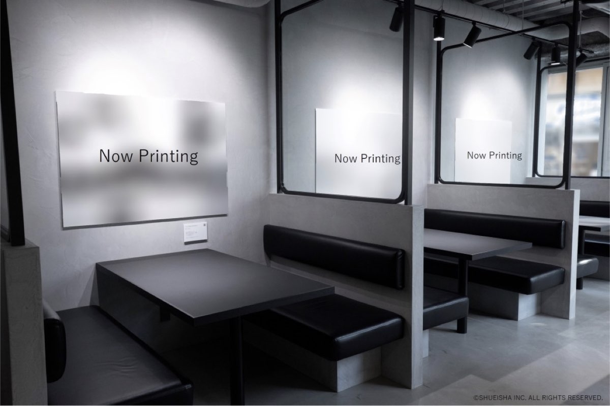 ギャラリースペースとカフェスペースには、マンガ誌アプリ「少年ジャンプ+」の短編から新進気鋭の漫画家の作品を展示。60日ごとに新たにし、新しい才能を応援すると共に、来店者にUnknownな作品とのリアルな遭遇という体験を提供する。また、ポップカルチャーの発信地としてマンガ作品への経緯を表し、内装やスタッフユニフォームはモノトーンにこだわり、カフェの主なドリンク?フードには、マンガの世界から取り出したようなモノトーンのメニューを多数展開予定だ。