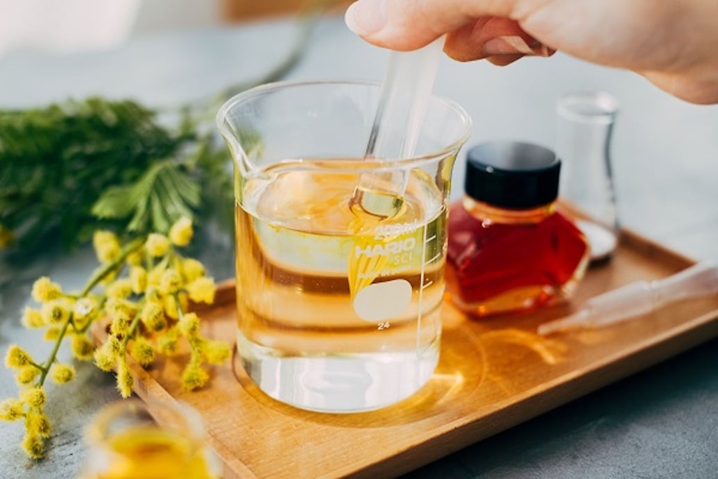ペン先のインクを落とすときは、水の中でガラスペンを軽くゆすればOK。ペン先を洗うビーカーは200mLがおすすめだという。