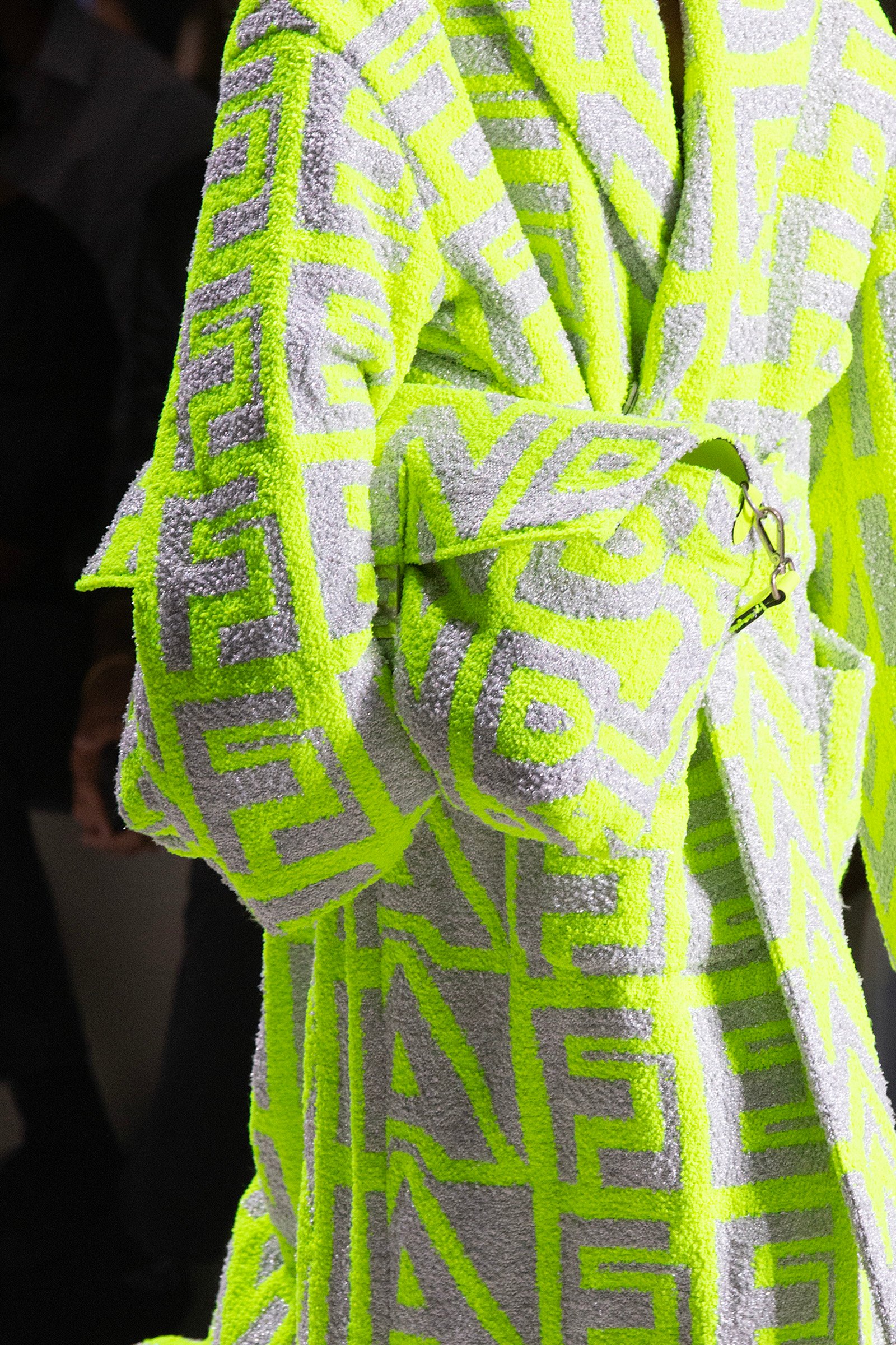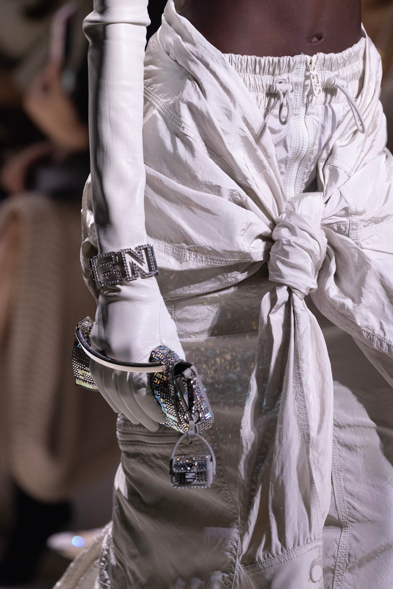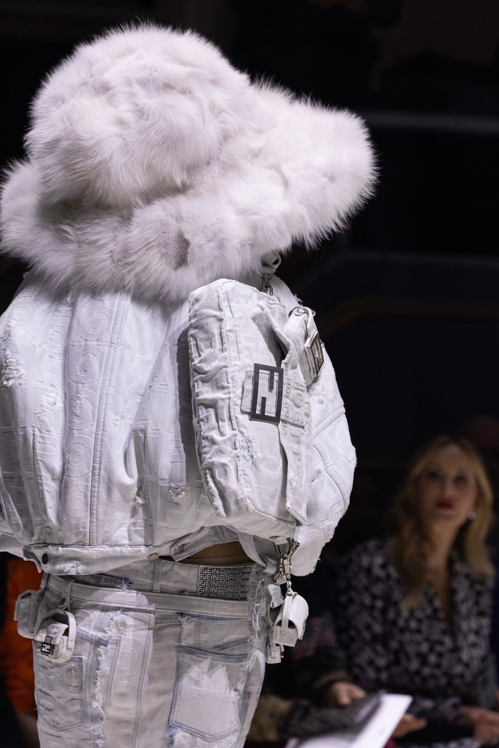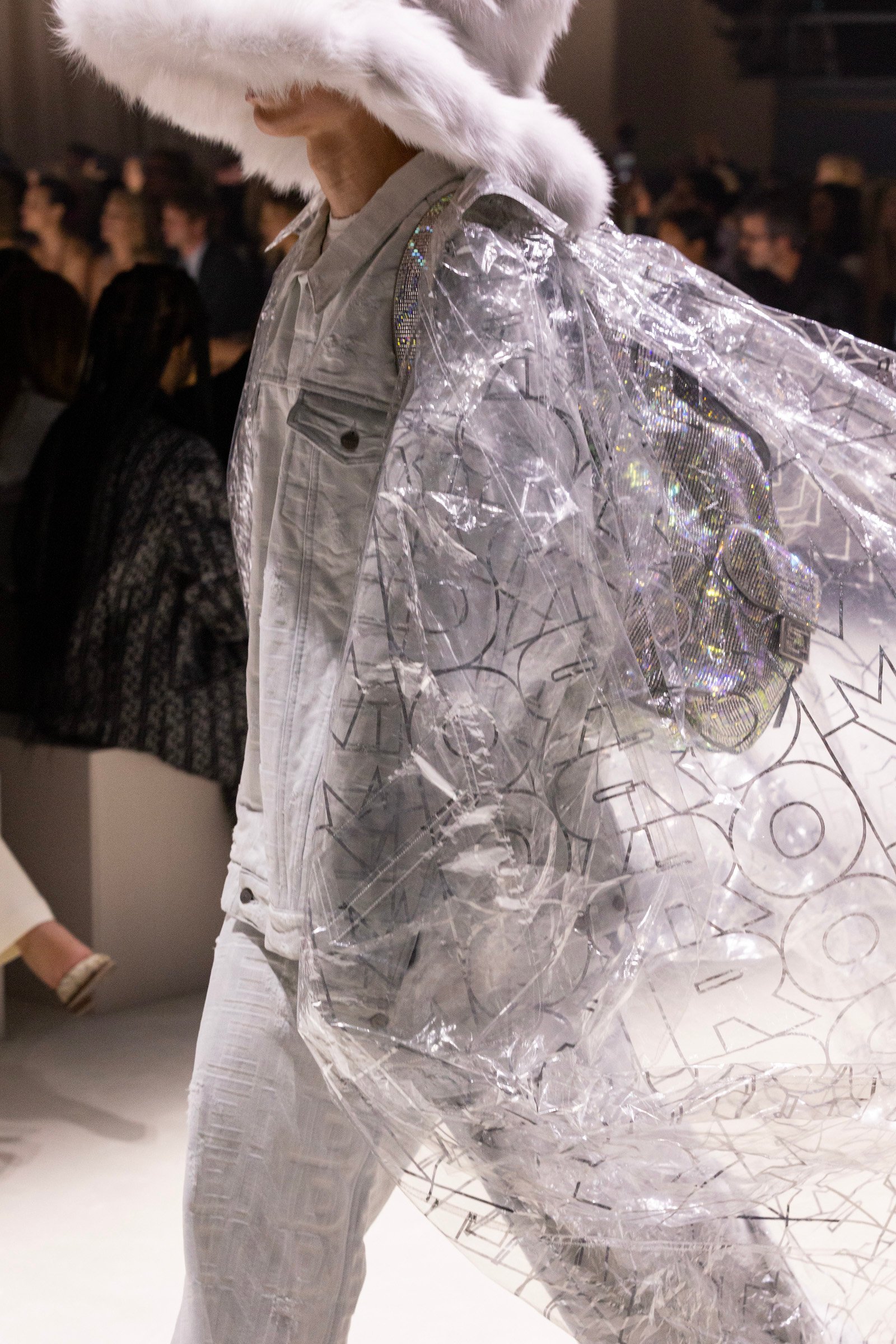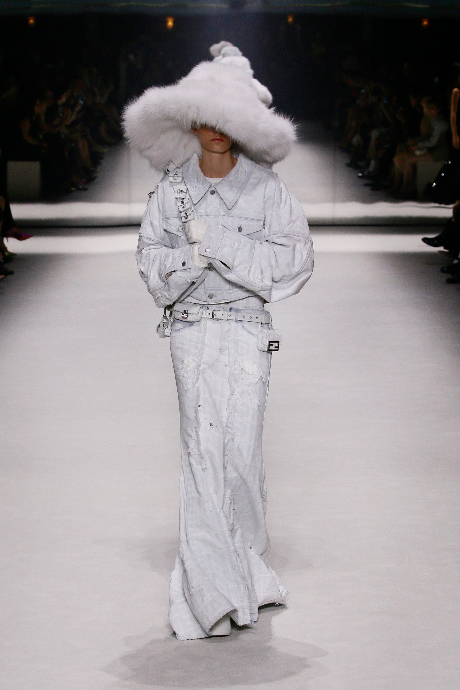 マーク?ジェイコブスは、長年の交友関係にあるキム?ジョーンズやフェンディのアイコニックなアイテムである「バゲット」と、バゲットを誕生させたメゾンに対する敬意をコレクションで表現したという。コレクションでは、パラシュートトレーンスカート、バルーンバックのブロークンデニムジャケット、セロファンのオペラケープ蛍光色のリサイクルファーのストールやハットなどを用意。ラインストーンやシルバー、蛍光イエローは、ニューヨークの路上で散見されるガラス張りの建物や、作業員の安全ベストから着想を得たという。