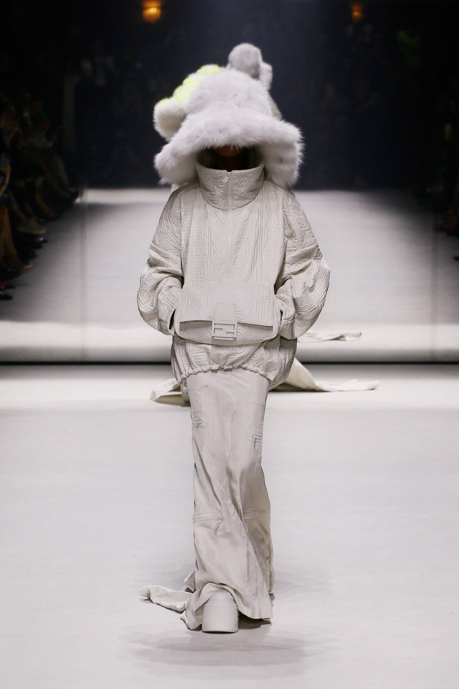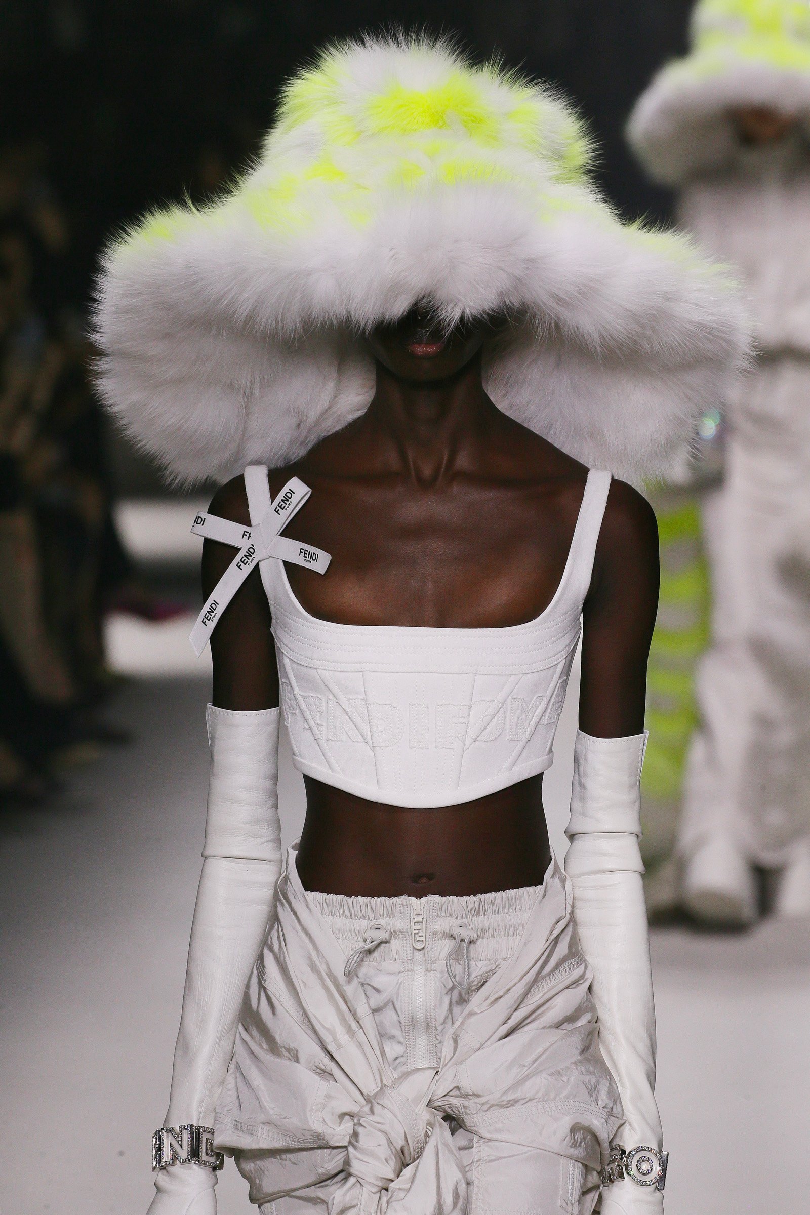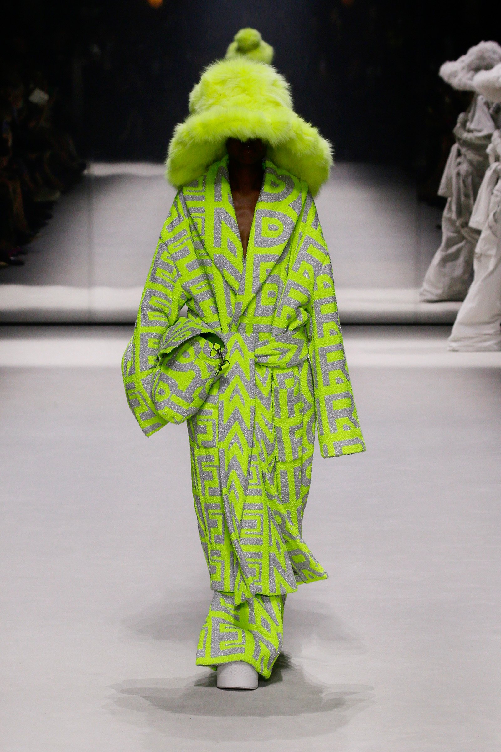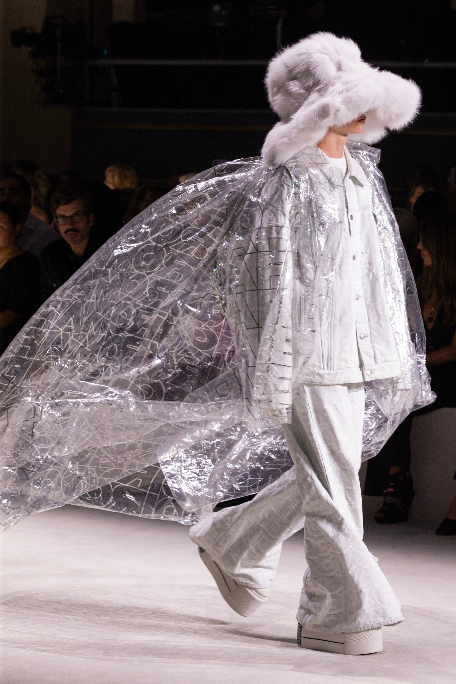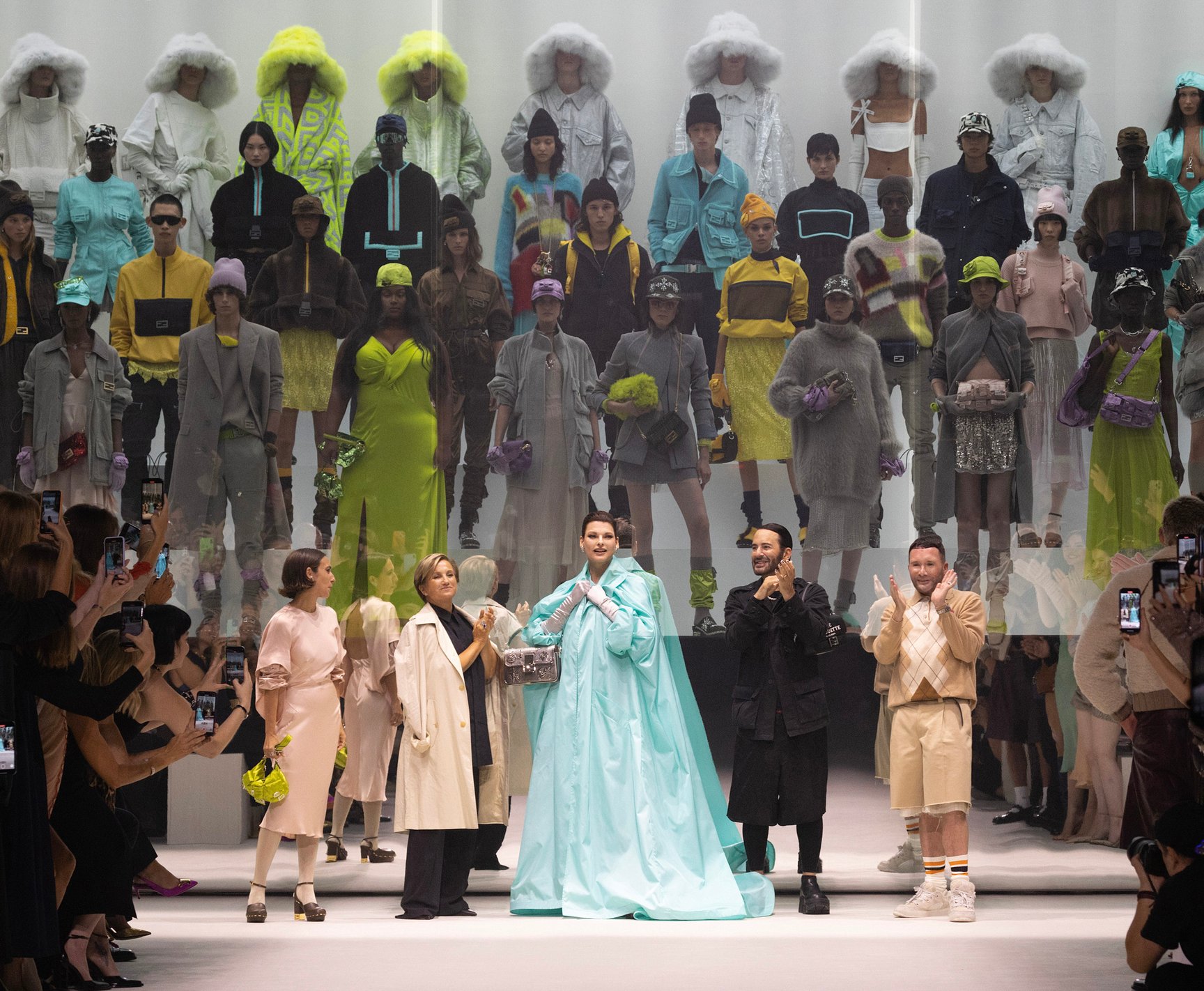 マーク?ジェイコブスは、長年の交友関係にあるキム?ジョーンズやフェンディのアイコニックなアイテムである「バゲット」と、バゲットを誕生させたメゾンに対する敬意をコレクションで表現したという。コレクションでは、パラシュートトレーンスカート、バルーンバックのブロークンデニムジャケット、セロファンのオペラケープ蛍光色のリサイクルファーのストールやハットなどを用意。ラインストーンやシルバー、蛍光イエローは、ニューヨークの路上で散見されるガラス張りの建物や、作業員の安全ベストから着想を得たという。