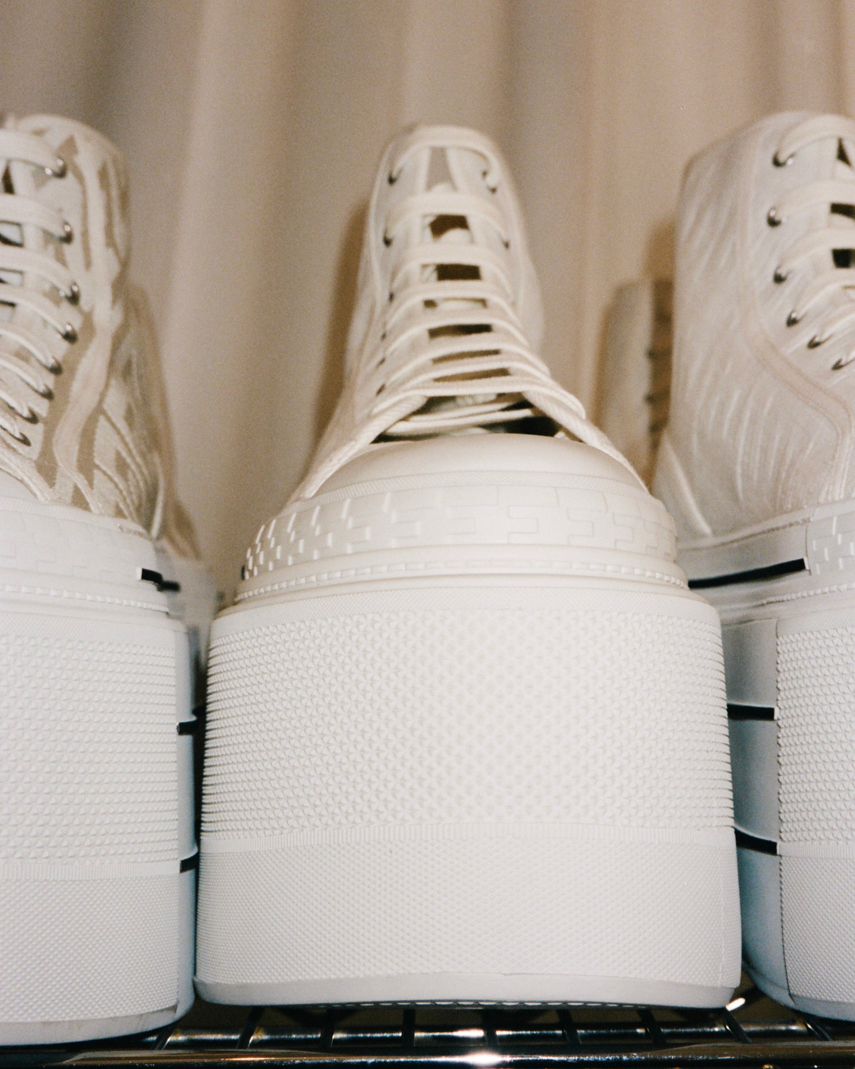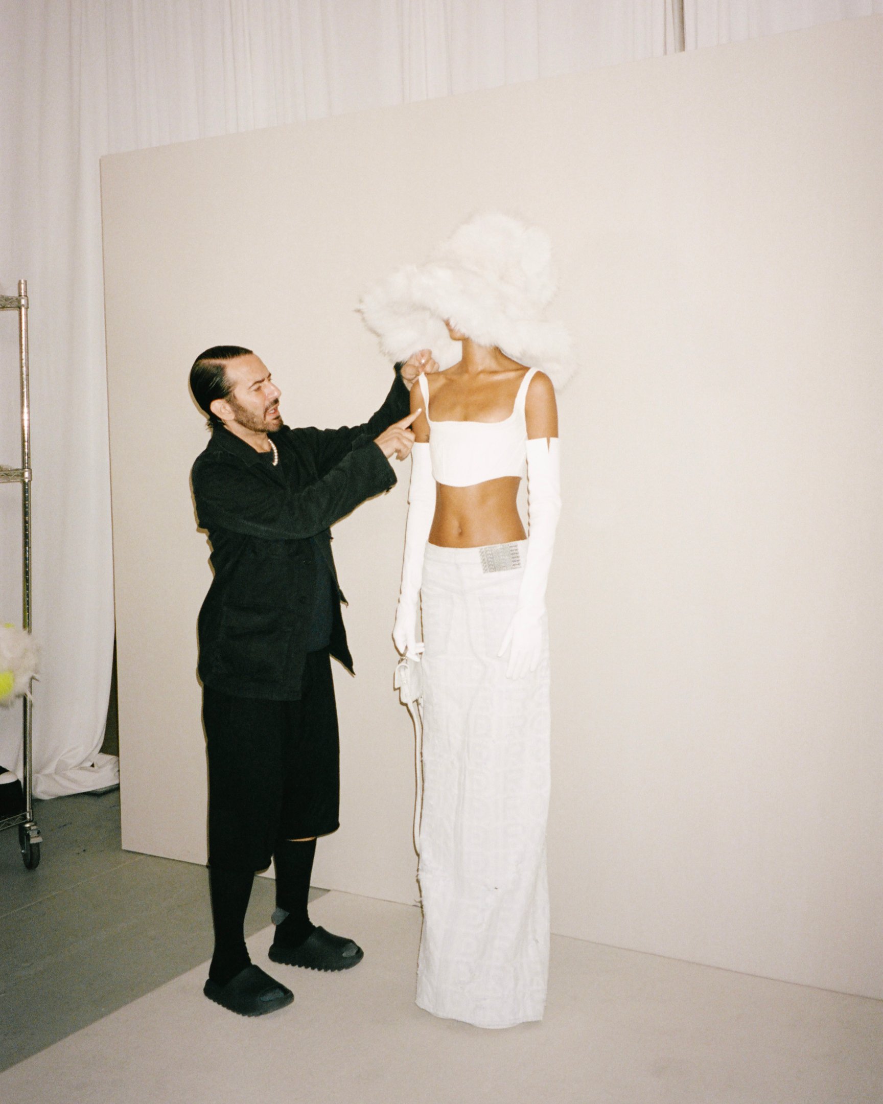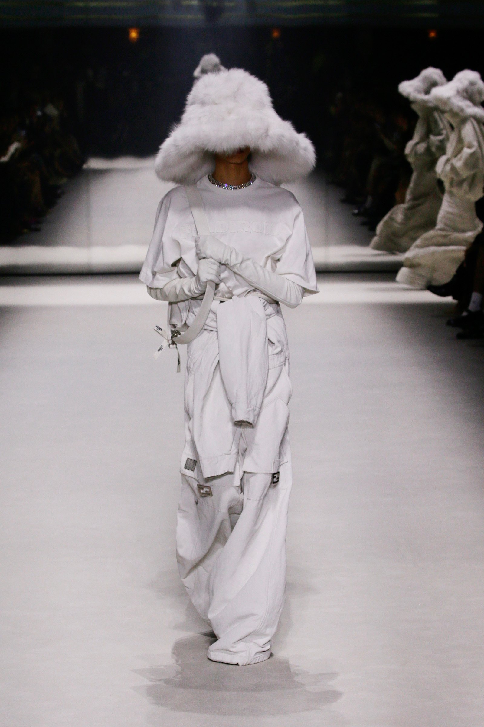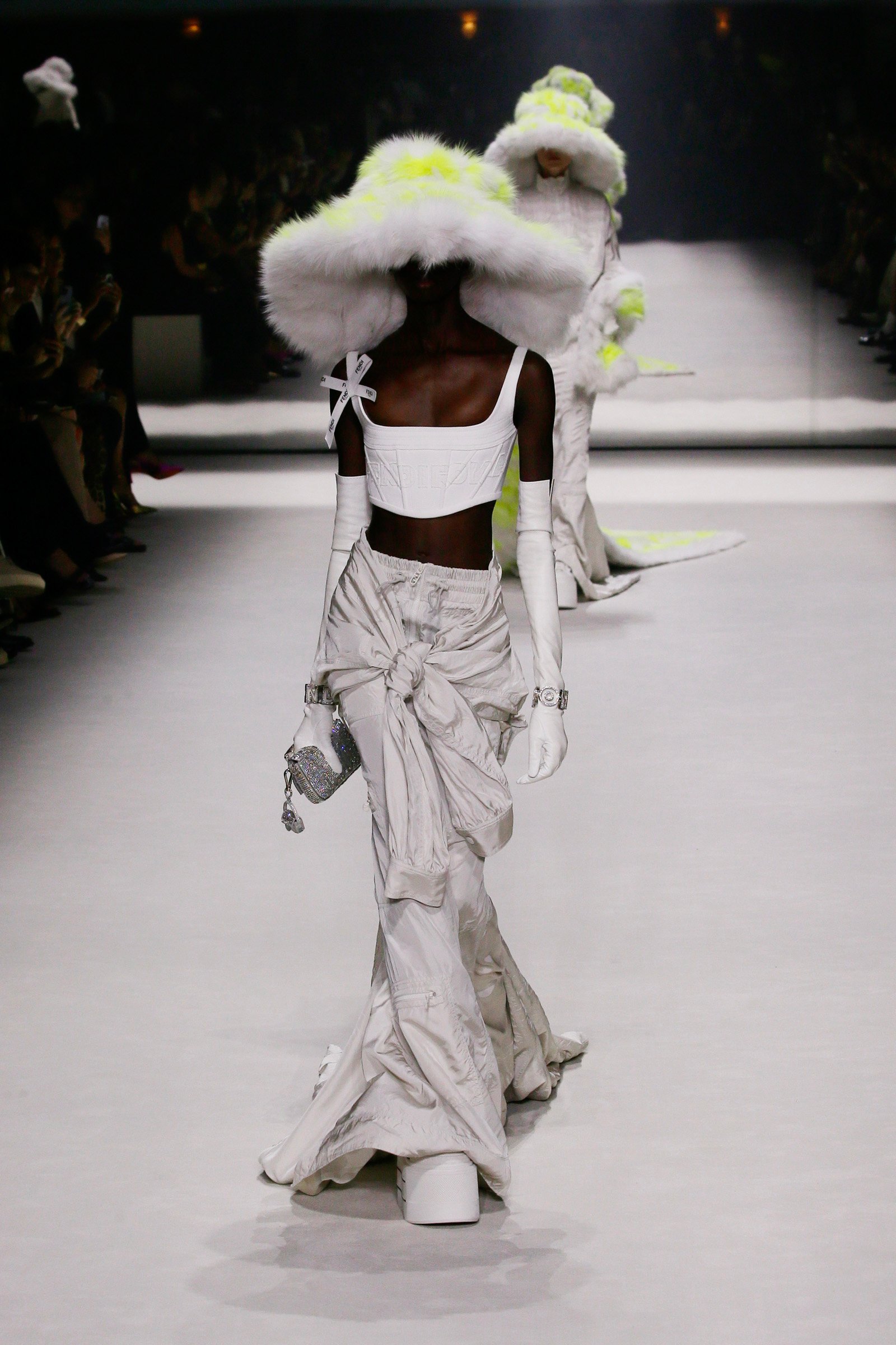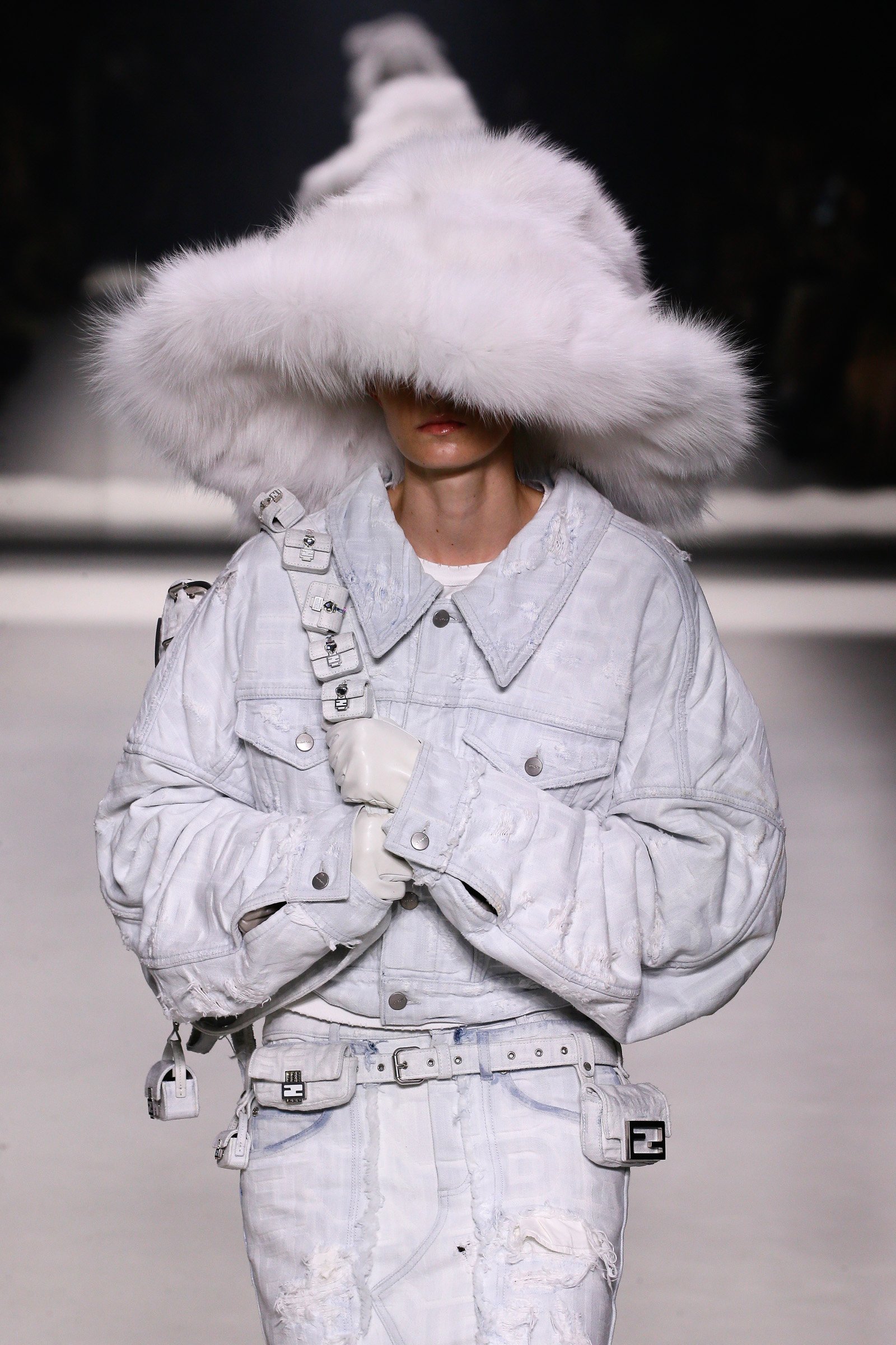 マーク?ジェイコブスは、長年の交友関係にあるキム?ジョーンズやフェンディのアイコニックなアイテムである「バゲット」と、バゲットを誕生させたメゾンに対する敬意をコレクションで表現したという。コレクションでは、パラシュートトレーンスカート、バルーンバックのブロークンデニムジャケット、セロファンのオペラケープ蛍光色のリサイクルファーのストールやハットなどを用意。ラインストーンやシルバー、蛍光イエローは、ニューヨークの路上で散見されるガラス張りの建物や、作業員の安全ベストから着想を得たという。