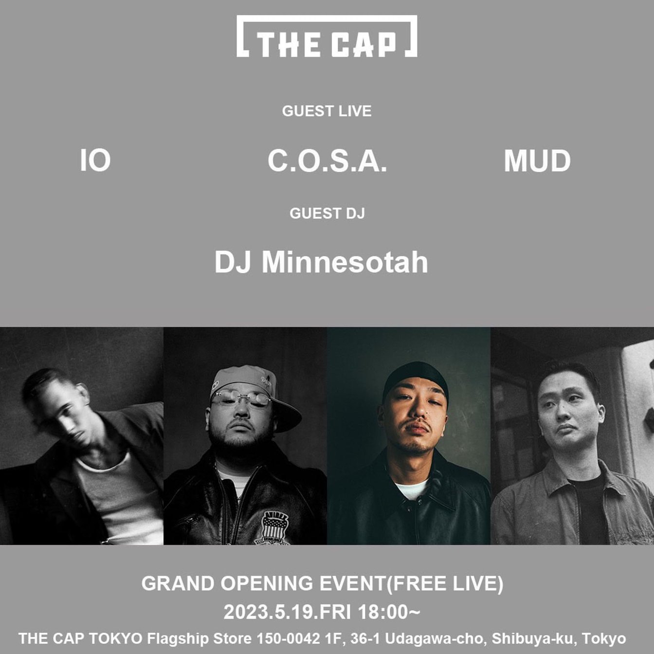 オープン前日の5月19日には、これまでTHE CAPのヴィジュアルにもモデルとして登場したIOや、C.O.S.A.、MUD、DJ Minnesotahによるフリーライブを同店で開催。参加方法はザ キャップの公式サイトで後日発表される。