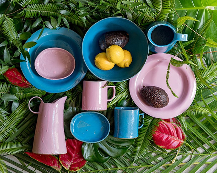 明るい空のような『モロッコブルー』やかわいらしい『ピンク』、マットな『白』を使ったトロピカルなうつわが、店内を鮮やかに彩っています。