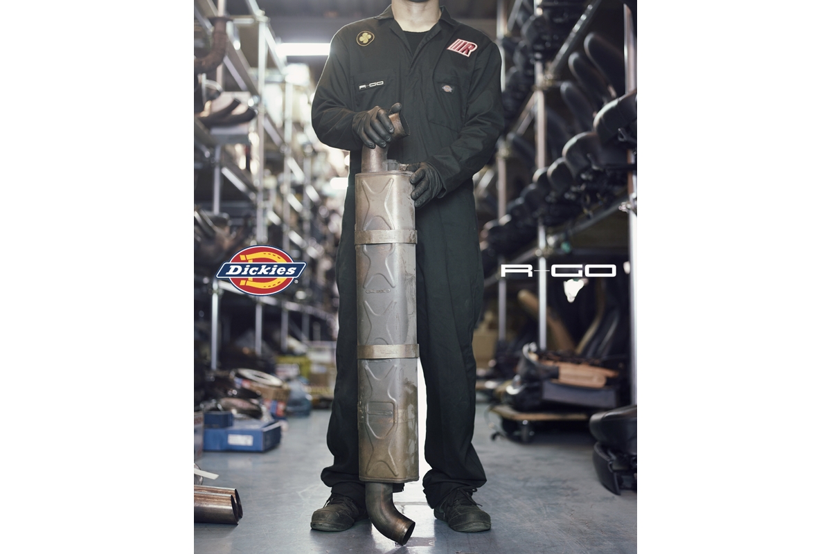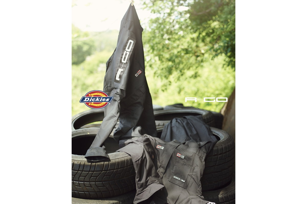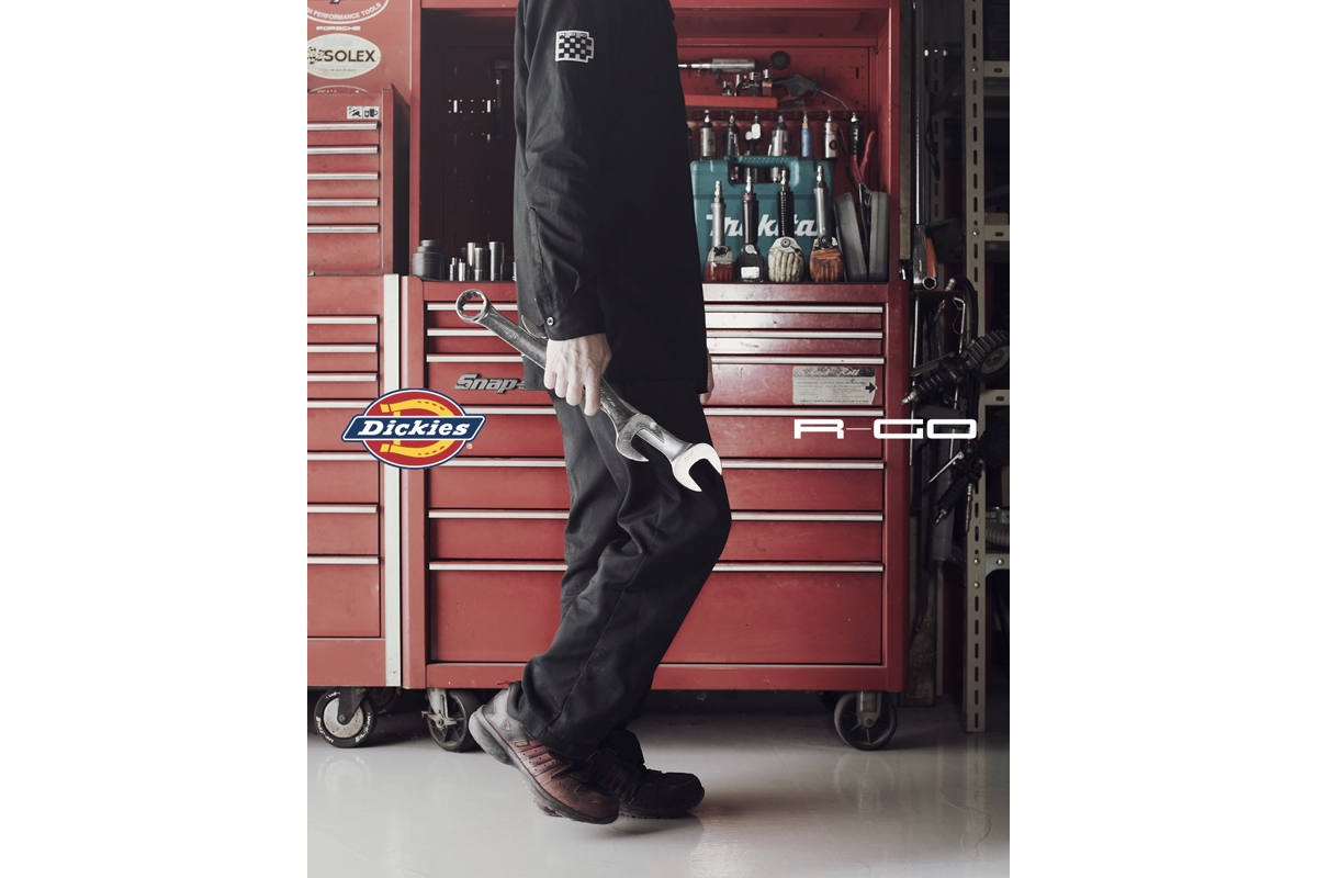 本展では、R-GOのメカニックをサポートする世界的ワークウェアブランド「Dickies」のオーダーメイドのユニフォームも展示。土日限定でR-GOのワークショップをイメージした限定グッズを購入できるほか、Tシャツ、ワークシャツ、そしてDickiesの代名詞である874ワークパンツにパッチを付けてその場でカスタマイズすることができる。