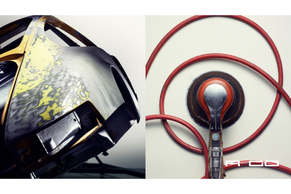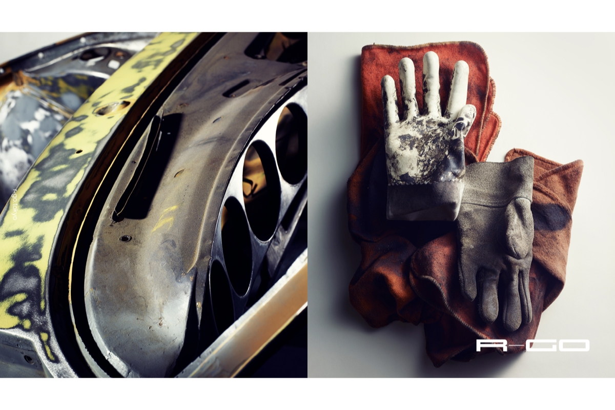 昨年、完璧にレストアされた鮮やかなグリーンの1974年型911Sが、予告なくStandByに登場したのに続き、今回の展示では、1973年型911Tの一部レストア、ワークショップの再現を公開。「Advance Notice」と題されたこの展示では、町田の工場で職人の手によって911がレストアされる過程を垣間見ることができ、工房を再現したStandByではレストア前の未完成ボディを間近に展示する事で貴重な体験が可能だ。会場にはR-GOの職人が使用する工具も用意されており、細部へのこだわりと献身的な姿勢が感じられる内容となっている。