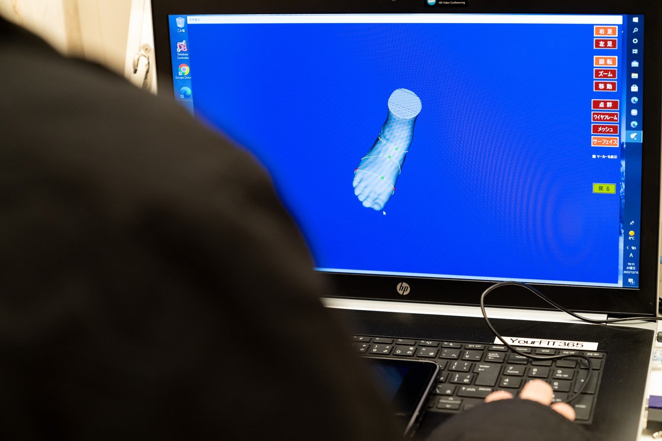 開発には、まず弊社内で多くの部門が関わっています。さらに、3D足形計測機の開発?製造や足形?靴型の分析など、人体計測?分析分野で多くの実績がある株式会社アイウェアラボラトリーとの協業も行っており、より高い精度のサービスを目指しています。企画の段階を経て、さまざまなテストトライを行い、待望のリリースまで約3年の時間を要しました。