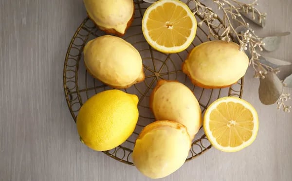 「HAKKOレモンケーキ(5個入)」(税込1512円)は発酵バターとレモンビネガーを合わせしっとりと焼き上げ、レモン香るチョコでコーティング。