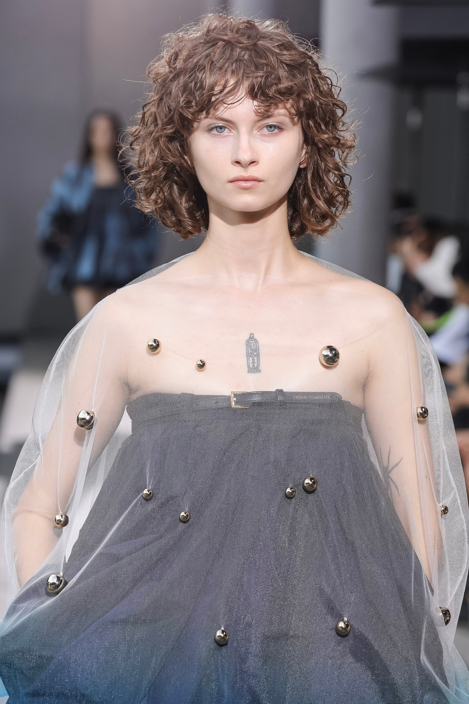 また、新たなアプローチとして、「ガーメントダイ」と呼ばれる後染めの加工を挙げ、「色の移り変わりが重要になるテーマだったので、チュールやベアトップのシルクドレスににグラデーション染めを施したほか、とにかく軽さを意識したハリのある素材を使用するなど、美しいと感じるものをストレートに表現した」とコメントした。