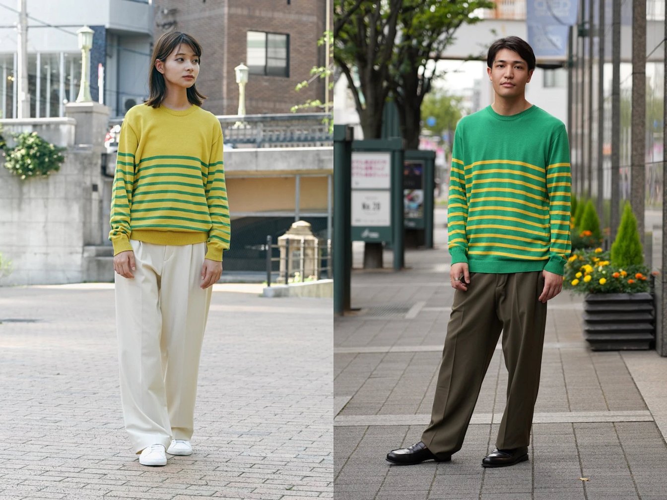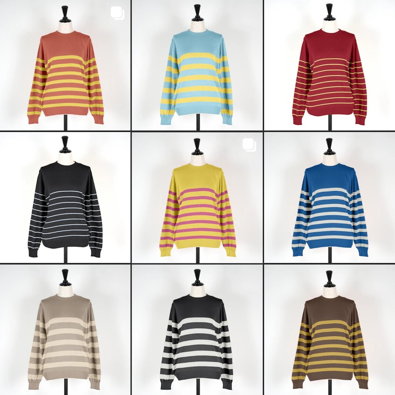 33色展開のカラーバリエーションの強みを生かして、非常に多いパターンの中から、その人だけの「デザイン」「配色」「シルエット」を選べます。「ボーダーニット」というシンプルな定番アイテムですが、ボーダーの太さや配色によって、顧客様が自分らしさや美意識を自由に表現してほしいと考えています。