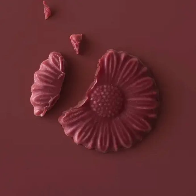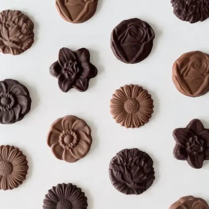 お花の形がかわいい「フラワーチョコレート」はキャラメル、ビター、ストロベリーの3種類。