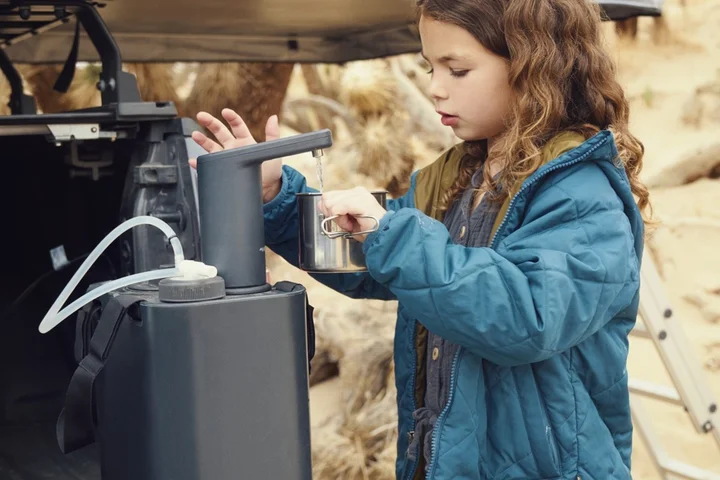 2つ目に紹介するのは、スウェーデンド初のアウトドアブランド“DOMETIC”のポータブル電動給水栓「HYD-WF」。アウトドアで手を洗ったり、歯をみがいたり、水筒に水を入れたり、料理用の鍋に水を入れたりする際の給水作業を、ボタンひとつで可能にする北欧デザインの電動給水栓だ。