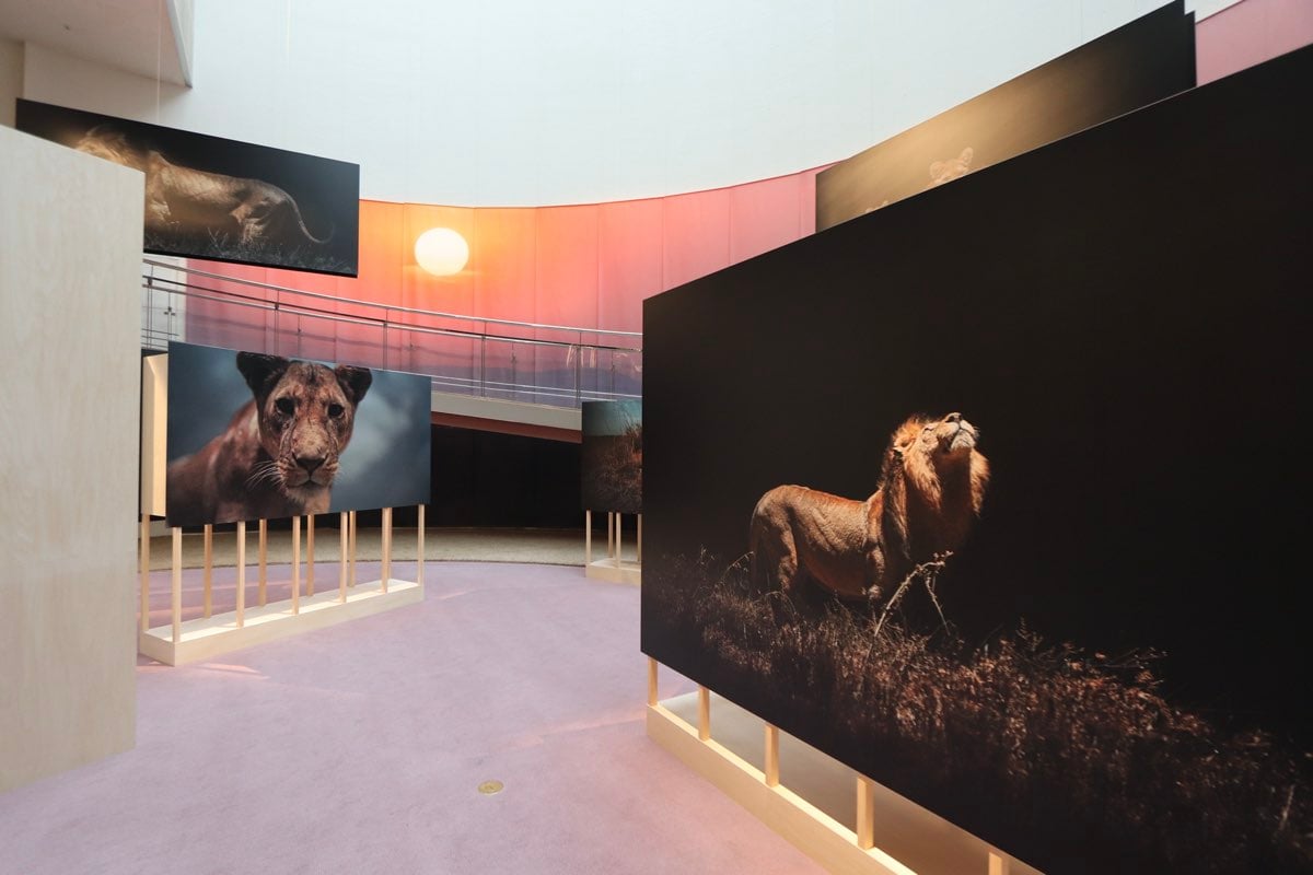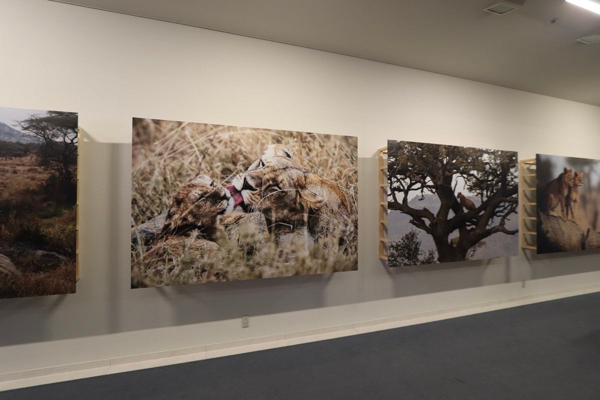 写真展の中心にあるのは、なんといってもライオンたちの愛くるしい表情。獰猛なイメージのあるライオンの、リアルな日常を覗き見るような写真たちが並ぶ。
