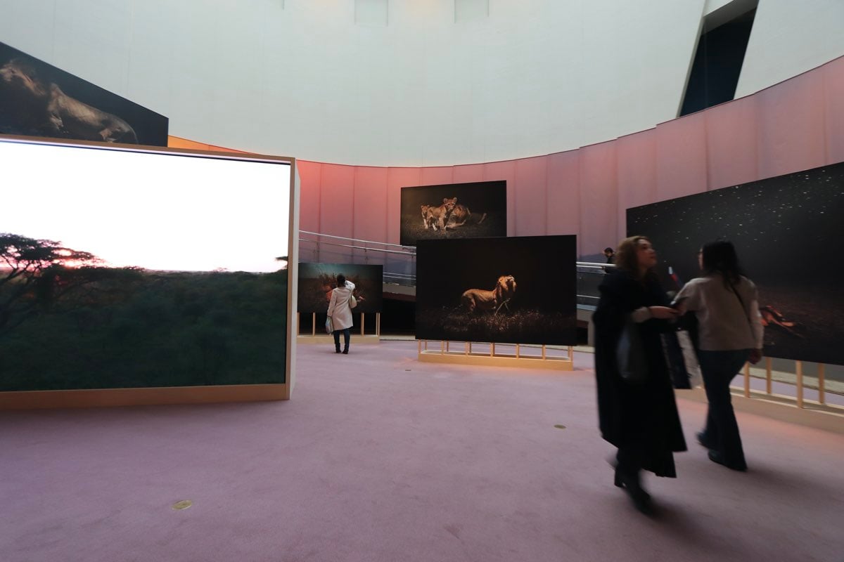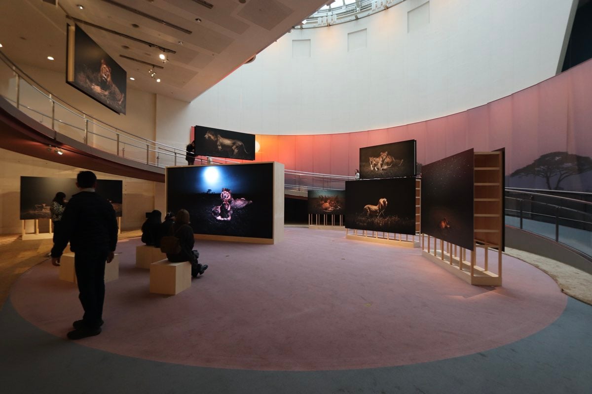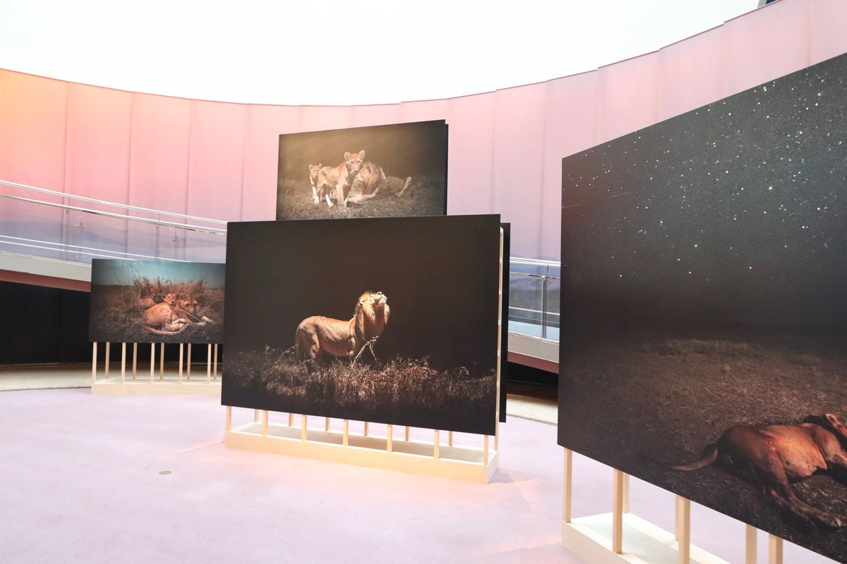 安達氏は最新鋭のロボティクスを駆使してセレンゲティ?ナショナルパークでの夜間撮影に挑んだ。展示された写真はまるでその場にいるかのような臨場感。ライオンたちの動きや表情が、まるで目の前で展開しているかのように感じられ、その技術の高さに驚くばかりだ。