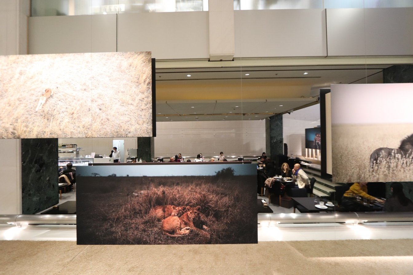展示会場は南青山にありながら、その雰囲気はまるでセレンゲティ?ナショナルパークに放り込まれたかのようだった。写真から野生の匂いを感じさせ、観る者を非日常の世界へと誘う。