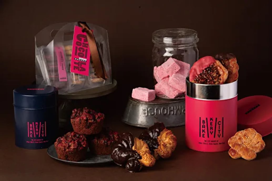 チョコフレーバーや限定キャニスターに入ったお菓子など、ギフトにぴったりなアイテムが並びます。