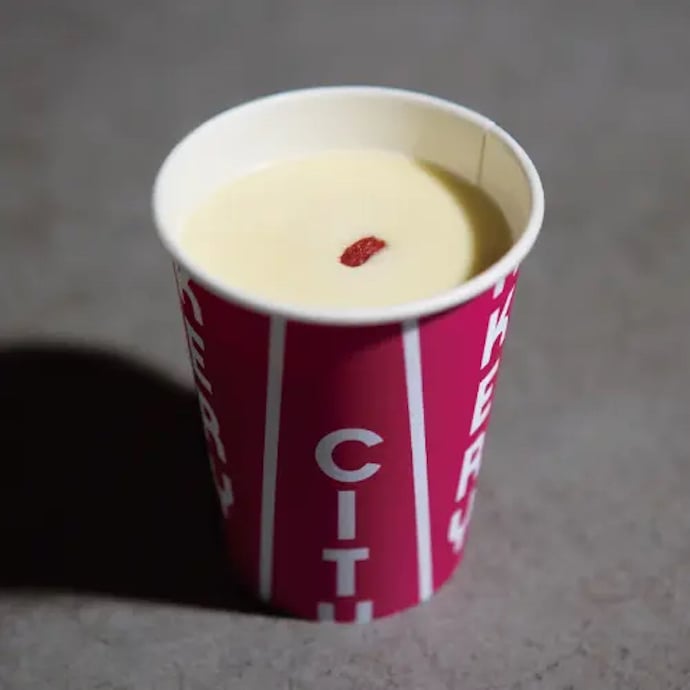 ホワイトチョコにアーモンドの風味に似た“杏仁霜”を合わせ、自家製オレンジシロップ&クコの実を添えた、すっきりした甘さの1杯なのだとか。