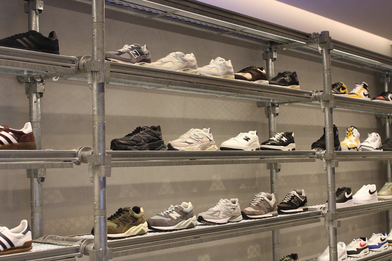 ナイキ、アディダスをはじめ、ニューバランスなど主要なブランドはすべて網羅。「ミタスニーカーズ」とも連携し、一部コラボモデルなども「ヘリンボーン フットウェア」でも展開される