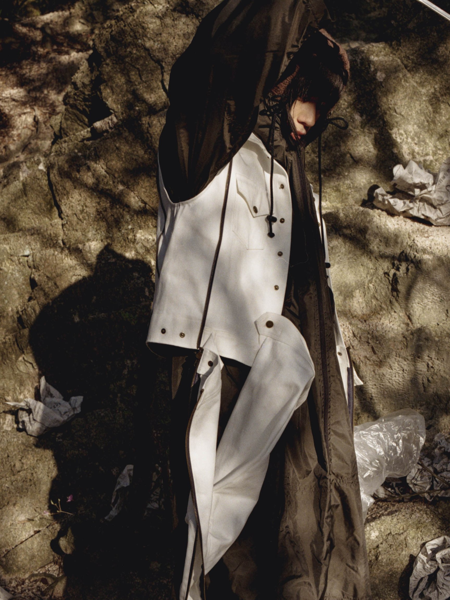 コラボジャケットは、CETTENが行っている循環活動の一環であるゴミ拾い活動と関連し、1960年代に日本で活動した前衛的アーティスト集団「ハイレッドセンター」に着想した、ゴミ拾いのユニフォームとしてのジャケットを製作した。両肩から腰までファスナーを配し、ファスナーを途中まで開くことで様々な形状に変化させて着用することができる。素材には、岡山で製造された14オンスのデニムを使用し、インディゴ、ブラック、ホワイトの3色を揃える。価格はいずれも6万6000円。コラボアイテムは5月4日からオンラインストアでも取り扱う。