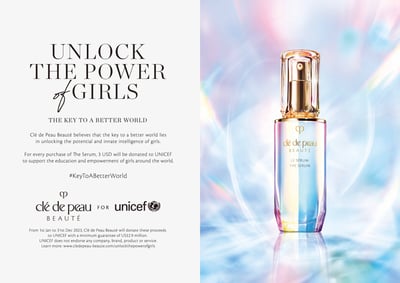 資生堂のグローバルラグジュアリーブランド「クレ?ド?ポー ボーテ(Clé de Peau Beauté)」と「ユニセフ」によるパートナーシップ活動が、2023年に更新し1年間で300万人以上の少女たちへの支援を達成した。2025年までにバングラデシュ、インドネシア、キルギス、カザフスタン、ラオス、ペルー、ベトナムなどの国々で、570万人の少女たちへの支援を目指す。