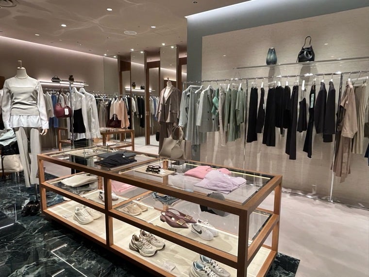 23年から始めた店舗改装は、旗艦店のほか渋谷ヒカリエやルミネ北千住、ルミネ池袋店などでも実施した。温かみのあるウッド調から、さらに高級感や洗練されたイメージを演出する大理石調の内装に変更した。