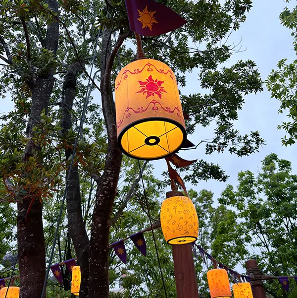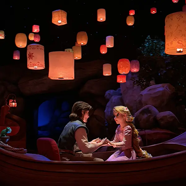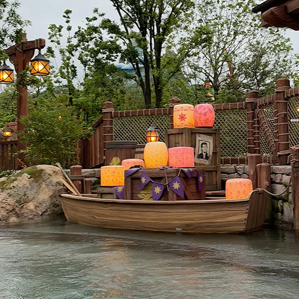「ラプンツェルのランタンフェスティバル」はコロナ王国の森を舞台に、年に一度のランタンフェスティバルへと向かうロマンティックなボートの旅を体験するアトラクションです。