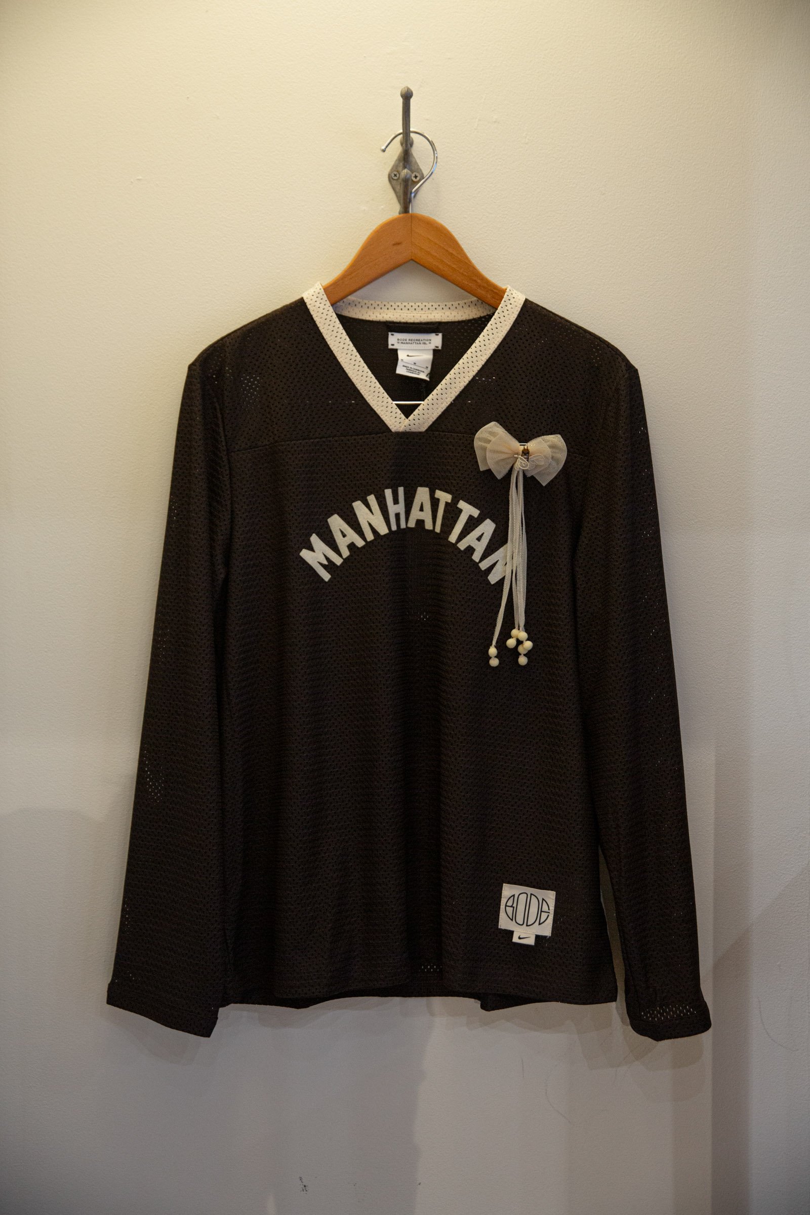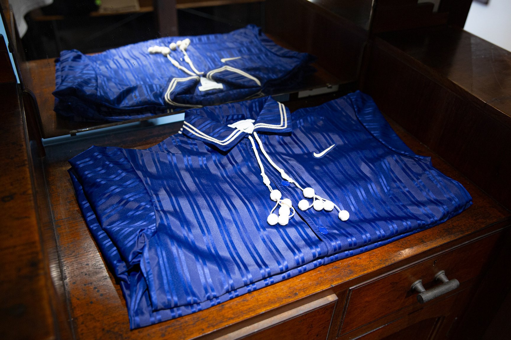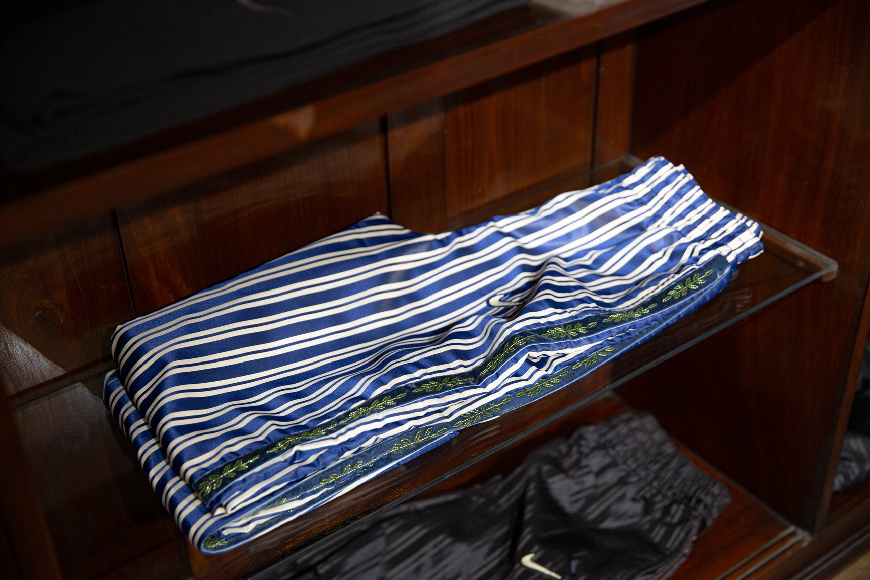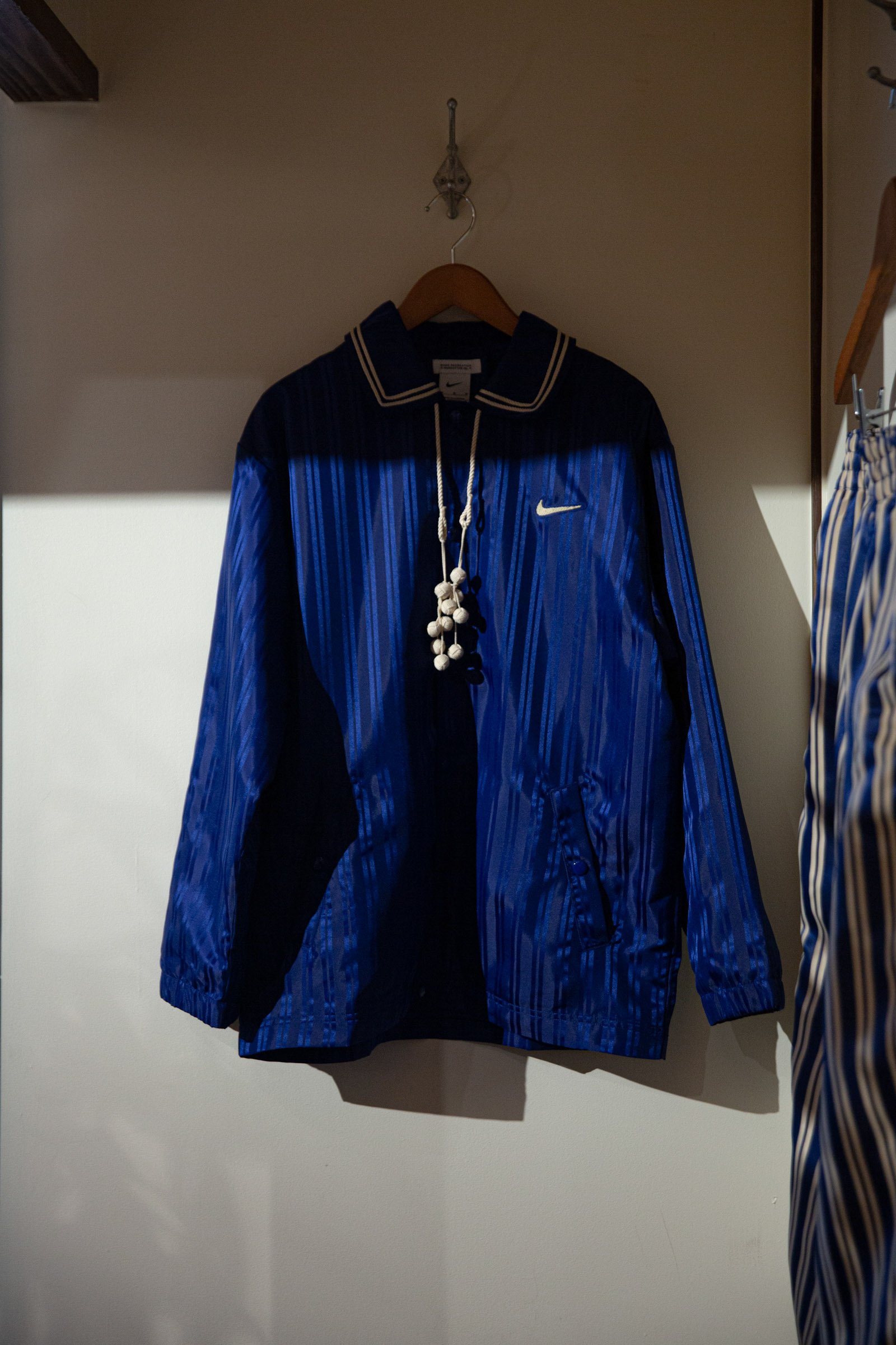 「Bode Rec. Nike Clubhouse」の会場内には、エミリーの夫でインテリアデザイナーのアーロン?アウジュラ(Aaron Aujla)のキュレーションによるインドのヴィンテージ家具や、ナイキ社の最初の社員であるジェフ?ジョンソン(Jeff Johnson)が撮影した、1970年代のアメリカのアスリートやスポーツ競技のモノクロ写真の数々を展示。アメリカにおけるスポーツやナイキの歴史と、伝統や家族の歴史、個人的な記憶を落とし込んだプロダクトを手掛けるボーディの世界観を豊かに感じる空間で、コラボコレクションのアイテムを楽しむことができる。