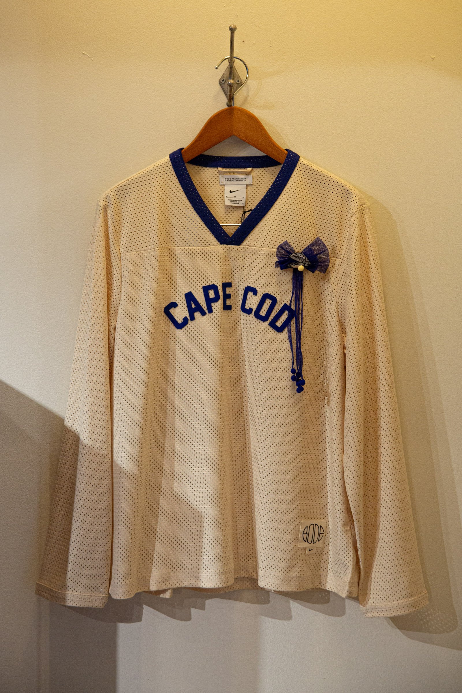 アパレルからは、トラックジャケット(5万7200円)やコード付きニット(3万6080円)、ビブスを連想させるベスト、ジャージー、ショートパンツ(2万5300円)、パンツなどをラインナップ。各アイテムには、ビーズの刺繍が施されたベルベットのテープやコードの装飾、コサージュ、ワッペンなど、ボーディらしいハンドクラフトの温かみや遊び心溢れるディテールをあしらった。フットウェアからは、人工芝の導入に対応して開発されたワッフルソールを特徴とするナイキ初のタフシューズ「ナイキ アストログラバー」をベースにデザインしたスニーカー(2万1230円/全て税込)が登場。ブラックとクリームの2色を展開する。同コレクションは、4月18日に世界で展開をスタート。日本国内では、5月24日から26日に開催の「Bode Rec. Nike Clubhouse」(※入場は抽選応募制)で取り扱うほか、5月27日からSNKRSおよびDSM GINZAでの販売を予定している。