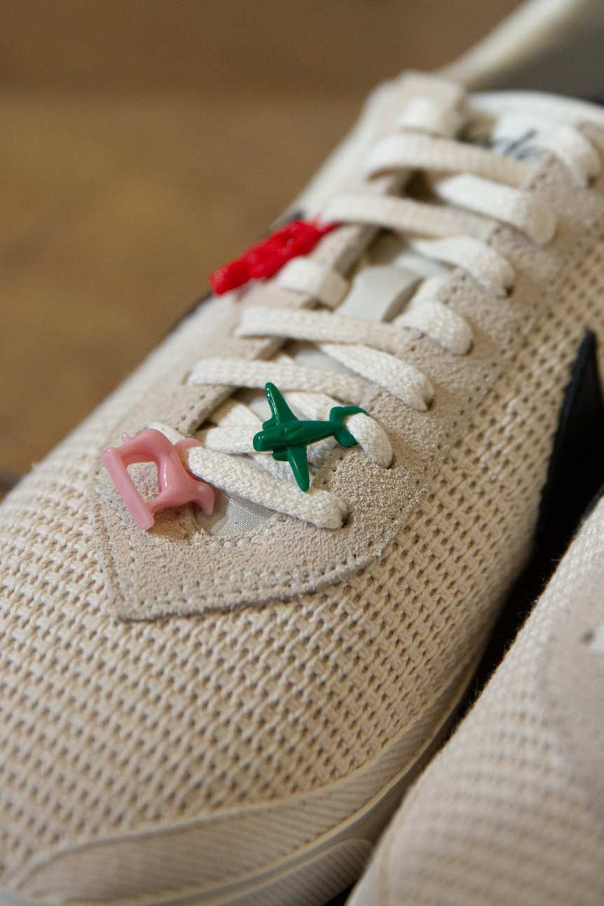 また、コラボシューズのモデルとして「アストログラバー」を選んだ理由を訊ねられると、「タイムレスなデザインであるのはもちろん、創業者の一人であるヒ?ル?ハ?ウワーマンさんが、当時新しかった“ワッフルソール”を初めて作った際、妻のワッフルマシンを使って手作りした、というハンドメイドな部分にボーディとの繋がりや共感を感じたからです」と言及。スニーカーの装飾には、エミリーがヴィンテージに興味を持ち始めるきっかけになったという、ラグビーボールのメタルチャームやアメリカのスナック菓子「クラッカー?ジャック(Cracker Jack)」のおまけのカラフルなプラスチックチャームを用いたことを明かした。