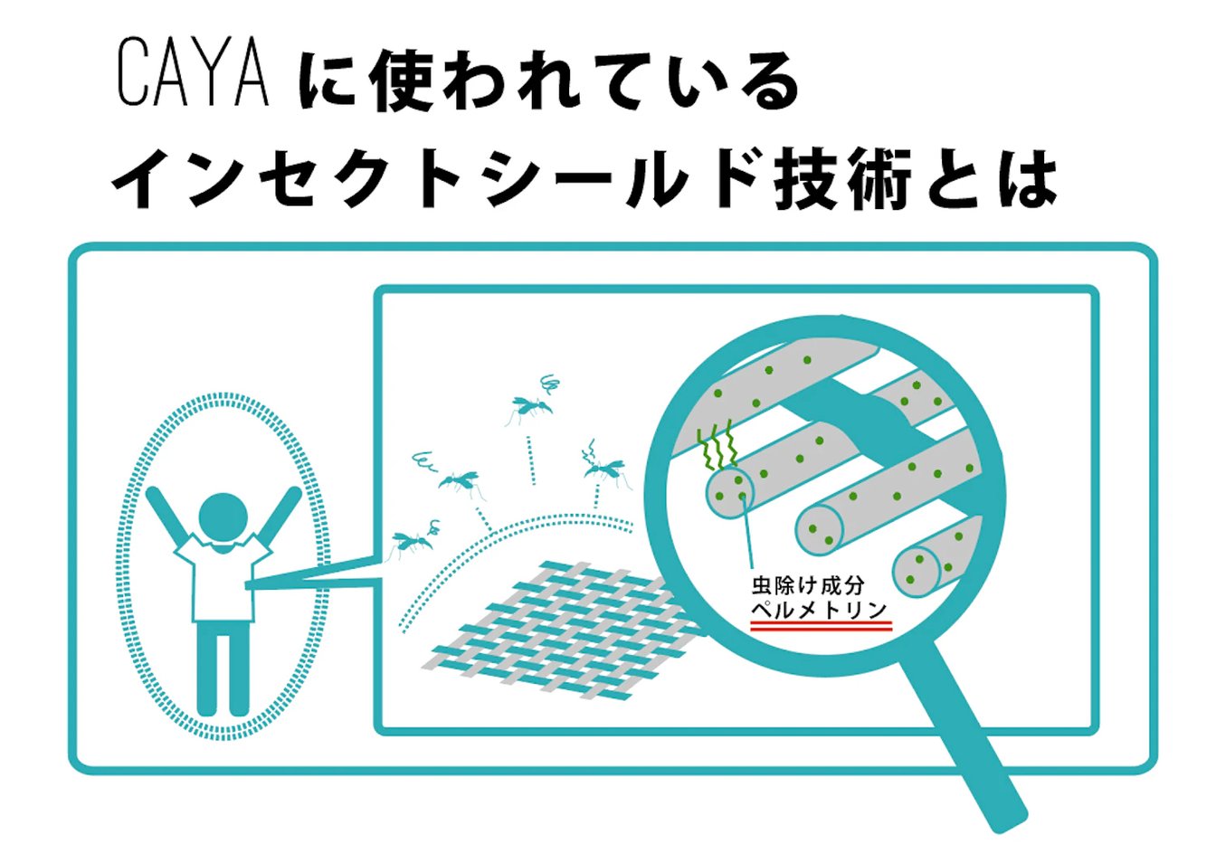 「そんな悩みが解消される、おしゃれなキッズウエアがあれば最高なのにと思っていたときに、画期的な『ディート不使用』の『インセクトシールド加工』の存在を知りました。インセクトシールド社へ想いを伝えたところ取り組みが実現し、2016年より『CAYA』ブランドがスタートしたのです」